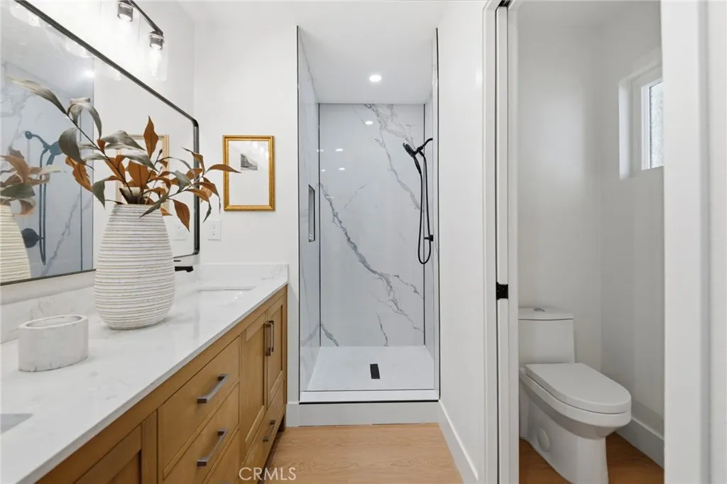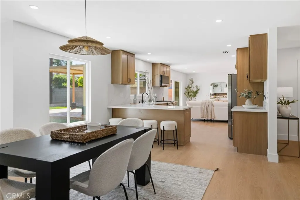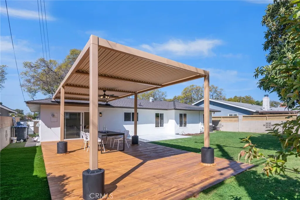 Welcome to this beautifully remodeled single-level home in the esteemed 92705 area of Santa Ana, nestled in the desirable Park Santiago Fairhaven neighborhood on a sought-after, tree-lined cul-de-sac. From top to bottom, this home has been thoughtfully updated to offer luxurious living with modern style and comfort. This turnkey residence features 4 bedrooms and 2 bathrooms, highlighted by elegant luxury vinyl plank flooring, fresh interior and exterior paint, and a floor plan with no interior steps. The fully renovated kitchen showcases shaker cabinetry with soft-close drawers, quartz/stone countertops, and brand-new appliances. Both bathrooms have been completely remodeled, including a primary suite with dual vanity and a walk-in shower with contemporary finishes. The home truly shines with seamless indoor-outdoor livingan oversized sliding door connects the living room to a large pergola (about 400 sqft) with same-level flooring, perfect for entertaining. Enjoy the upgraded outdoor space featuring a louvered pergola roof and built-in drain for year-round comfort. Major system upgrades provide peace of mind, including a complete house PEX re-pipe, dual-pane windows, and new A/C duct work. All upgrades were completed by a California licensed contractor. Additional highlights include an attached direct-access garage with a finished interior and laundry in the garage, plus no HOA, no Mello-Roos, and easy access to major freeways.