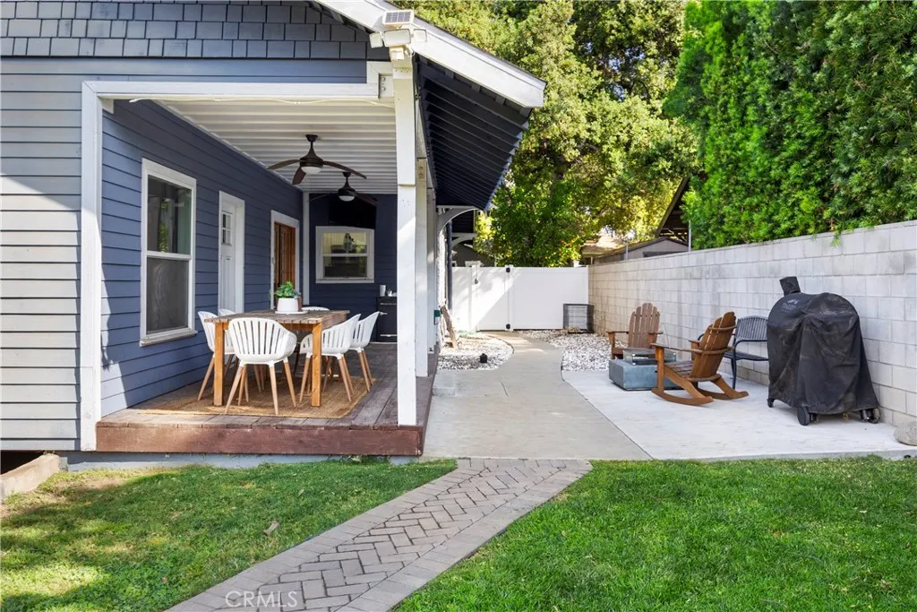 ADU DREAM OPPORTUNITY + PAID-OFF SOLAR + ALLEY ACCESS! Expansive lot with rear alley entry and existing barn creates the perfect setup to build a large ADU with garage, guest house, or income-producing unit (buyer to verify). Whether youre looking to offset your mortgage, create multi-generational living, or develop long-term valuethis property delivers. Located just one block from Downtown San Dimas, this beautifully restored 1912 Craftsman blends timeless character with modern upgrades in one of the citys most desirable neighborhoods. Inside, the home has been thoughtfully remodeled to preserve its historic charm while enhancing everyday living. Features include restored original hardwood floors, a designer kitchen with custom cabinetry, quartz countertops, farmhouse sink, and a statement backsplash. Both bathrooms have been tastefully updated with vintage-inspired finishes that honor the homes early 1900s roots. A versatile bonus room with French doors opens to the backyard deckideal for a home office, creative space, or additional living area. The primary suite offers a walk-in closet, en-suite bath, and direct outdoor access. Step outside to a spacious backyard designed for both enjoyment and expansion. With alley access and a detached rear structure, the layout is ideal for those looking to build a larger ADU with its own garage, separate entrance, and private yardan increasingly rare and valuable setup. Paid-off solar adds immediate savings and long-term efficiency. Commuters will appreciate quick access to the 210 and 57 freeways, making travel to Los Angeles and Or