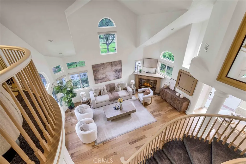 Huge price reduction for a quick sale!!! Welcome to this beautiful and charming home, nestled on a quiet cul-de-sac in the prestigious Via Verde neighborhood of San Dimas. This spacious two-story residence offers 4 bedrooms and 3 bathrooms, including a convenient downstairs bedroomperfect for seniors family members or guests. A soaring cathedral ceiling welcomes you into the bright and airy living room, highlighted by a warm gas fireplace. The upgraded kitchen, open to the family room, features KitchenAid stainless steel appliances, white cabinetry, quartz countertops, a breakfast counter, and modern finishesideal for both everyday living and entertaining. The home also showcases hardwood flooring, adding warmth and elegance throughout the main living areas. Upstairs, the primary suite boasts high ceilings, elegant double-door entry, and a generous walk-in closet. The primary bathroom invites relaxation with a jacuzzi tub and dual sinks. Two additional large bedrooms share a full bathroom upstairs, one of which includes a custom-built office. An upstairs loft overlooks the living room and dining area below, enhancing the open and airy design. Recent improvements include a remodeled downstairs bathroom, recessed lightings, complete repiping of the downstairs within the past 10 years, and a new A/C compressor replaced in 2022, interior painting and family room recessed lightings in 2025 offering peace of mind to the new owner. Additional highlights include a large attached two-car garage with high ceilings. The HOA provides exceptional value, covering the exterior structure,