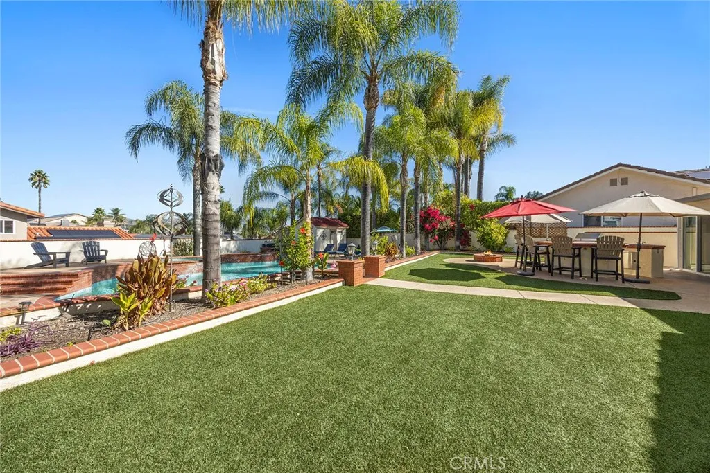 Vacation Living At Its Best! Welcome to your own private resort in the guard-gated community of Canyon Lake. Set on a large cul-de-sac lot, this fully upgraded single-story home is surrounded by mature palms, lush turf, and custom concretedelivering instant, effortless tropical luxury. Inside, enjoy a bright, open layout with no stairs, tile flooring throughout, and natural light pouring in through dual-pane Pella windows and solar tubes. The chefs kitchen is dialed in with Brazilian granite, farmhouse sink, soft-close cabinetry, and premium KitchenAid and Bosch appliances. The backyard is where this home wins. A resort-style heated pool and spa, built-in BBQ island with bar seating, and gas fire pit create the ultimate entertainers setup with seamless indoor-outdoor flow. Upgrades include PAID-OFF SOLAR, whole-house reverse osmosis system, whole-house fan, pellet stove, and central HVAC. The finished 2-car garage adds epoxy floors, built-ins, workspace, and serious storage. Minutes from the lake, golf course, dining, and morethis is turnkey, resort-style living at its best.