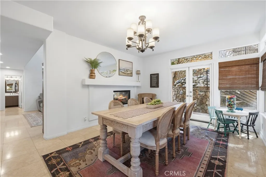 Welcome home to this IMMACULATE home in The Oaks in Newhall! This stunning home sits on a cul-de-sac street with great curb appeal and extra privacy with no neighbors off to one side and none behind you. A double door entry greets you into high ceilings, travertine flooring, and a front flex space that has been closed off to create a perfect living room or office space. Your spacious and updated open-concept kitchen is a SHOWSTOPPER featuring quartz countertops, a breakfast bar peninsula, newer two-tone soft-close cabinetry with champagne bronze hardware, stainless steel appliances, a large single-basin sink, recessed lighting, and pantry. It opens up to the dining room with a two-sided fireplace and French doors to the backyard featuring water cascading down a majestic river rock wall, an elevated jacuzzi, and separate seating area perfect for al fresco-dining. Your downstairs is complete with a GREAT ROOM with high ceilings, the cozy two-sided fireplace, ceiling fan, French doors to the backyard, and large windows for natural light to pour into. You also have a FULL BATHROOM AND BEDROOM DOWNSTAIRS with its own set of French doors for direct backyard access. Walk up the extra wide staircase where light pours in from the skylights above. Upstairs you'll find newly installed carpet and your four additional bedrooms (all with ceiling fans), laundry room, full hallway bath with double-sink vanity, and spacious primary suite that SPANS THE ENTIRE SIDE OF THE HOME equipped with its own fireplace, two walk-in closets with built-in organizers, skylights, walk-in shower, soaking tu