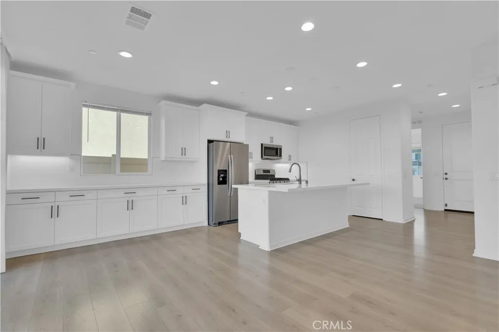 Welcome to this beautifully designed home in Corona, ideally situated at the end of a quiet cul-de-sac on a spacious lot, offering both privacy and modern comfort. This thoughtfully crafted two-story residence features 4 bedrooms and 3 bathrooms, including a convenient main-floor bedroom and full bath, perfect for guests or multi-generational living.The open-concept layout showcases a spacious great room that flows seamlessly into a beautifully appointed kitchen. The kitchen features white thermofoil cabinetry, quartz countertops in Miami Vena, a large center island, breakfast bar seating, and a charming dining nook with center-meet doors, creating the perfect space for entertaining and everyday living. Stainless appliances include a gas range, microwave, dishwasher, and garbage disposal, complemented by a tankless water heater for energy efficiency. Upstairs, youll find a generous primary suite with an attached spa-like bathroom and expansive walk-in closet, along with a versatile loft and a convenient upstairs laundry room with pre-plumbing for a sink. Additional upgrades include wood laminate flooring, double-pane windows, and extra windows for natural light. With its modern finishes, functional layout, and desirable cul-de-sac location, this home offers the perfect blend of style, comfort, and convenience.