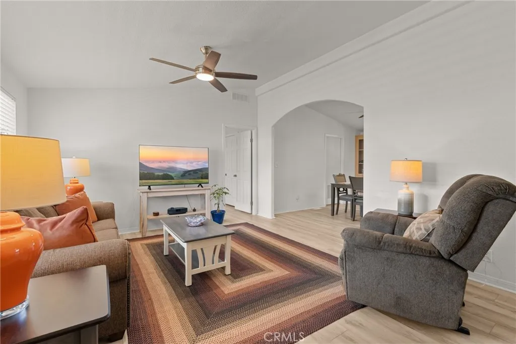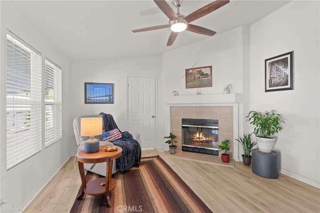 Exceptional Forest Gardens Home -a rare find! Discover this remarkable gem nestled on a cul-de-sac in the highly sought-after 55+ Forest Gardens neighborhood. Built in 2006, this cheerful residence offers the perfect blend of modern comfort and timeless appeal. This property features 3 bedrooms, 2 baths, plus versatile bonus space that adapts to your lifestyle. The generous open-concept floorplan creates an inviting atmosphere perfect for both everyday living and entertaining. Gather around the cozy fireplace during cool evenings, creating memories in the warm, welcoming hearth room, suitable for living or dining. A laundry room with sink, single level floorplan and plenty of storage make life simpler. The home was updated this year with luxury vinyl flooring throughout, new lighting fixtures, and other touch ups. Forest Gardens is located approximately 10 minutes from the Irvine Spectrum. The community features a pool, spa, gym, library, billards room and social activities. With easy access to freeways, canyons and the beach, make this home the stage for your next chapter. Credit score of 750+ is required for park approval.
