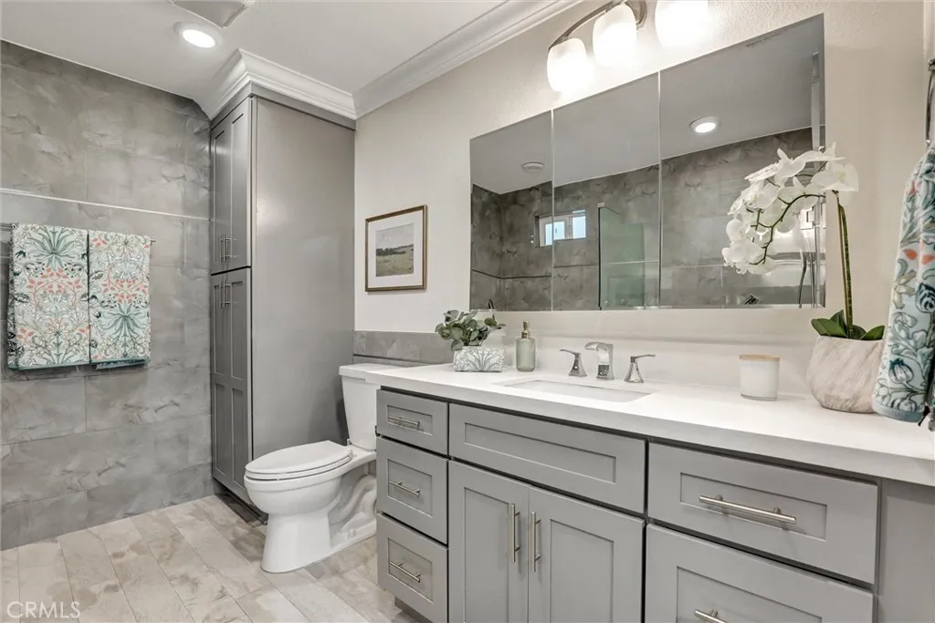 Fully Remodeled. Open Concept Kitchen. Luxurious Tiled Fully Remodeled Bathrooms. Primary Suite has Redesigned Oversized Step in Shower Plus Separate Soaking Bathtub. Central Air Conditioning, 1,199 Sq. Ft. ,2 Bedrooms 1.75 Baths , Smooth Ceilings, Newer Recessed LED Lighting, New Low Pile Carpet in the Bedrooms, New Paint, High Quality Wood Flooring in the Entry, Dining and Living Room Areas. Double Pane Windows and Sliding Doors, Move -In Ready. ( Some Furniture Can Remain ) Garden Villa Type Floorplan - Model Name is Villa Capri 2. Easy Access to the World Class Golf Course and Very Close to Clubhouse 4 ( Pool Hot Tub and all the Arts & Crafts- Wood Shop , Jewelry Making, Art and Ceramics ( Both Slip Casting and Wheel ) Studios, Sewing and Quilting Rooms , Photography Studio & Lapidary ( Stone Cutting ,Tumbling, & Glass Polishing ). 7 Clubhouses, 5 Swimming Pools, Pickle Ball, Tennis, Bocce, Ping Pong, 2 Computer centers ( PC and MAC )Free Local Bus Transportation, Welcome To Laguna Woods Village less than 8 miles to the Beautiful Blue Pacific Ocean in Laguna Beach.