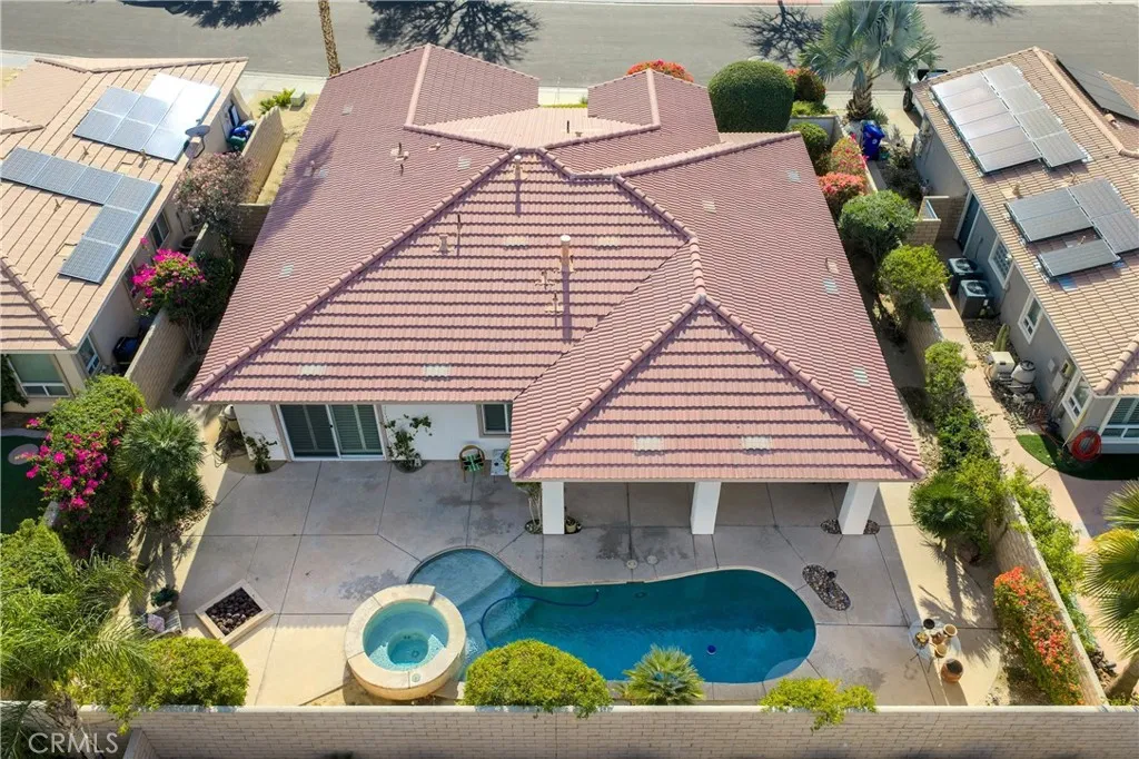 Great new price! Private pool home in the wonderful, gated community of Tuscany. Enjoy views of the San Jacinto mountain peak from your rear yard and private pool, spa, and firepit. You can even see the light at the top of the tram at night. This community boasts exceptional space, landscaping, a gated entry, dog park, playground, and stunning water fountain. The community pool and hot tub with bathrooms and BBQ equipment are across the street. The home has a practical floor plan with 3 bedrooms, 2 bathrooms and an additional flex room that would make a stately home office or den. Enjoy the surround sound speaker system, air conditioning, and convenient single level living. Also, this property was just retrofitted with all those items that insurance companies are looking for like water flow, temperature and smoke detector monitoring, a tremendous help in getting new insurance. Affordable Coachella Valley living in a fantastic community near everything that makes the Palm Springs area so desirable.