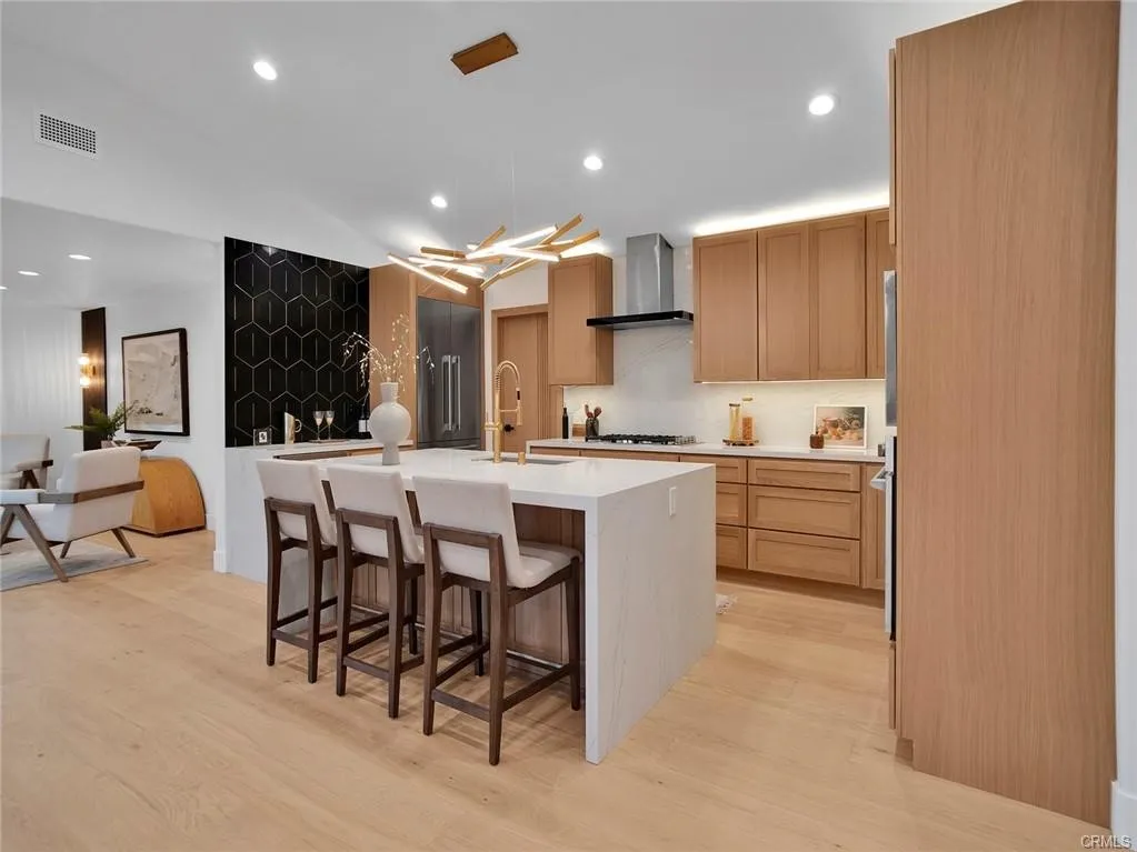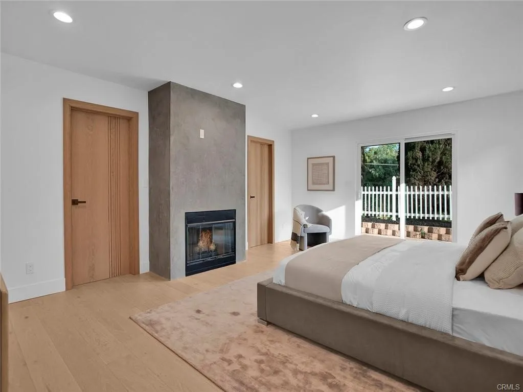 Set against a backdrop of scenic, panoramic views, this fully renovated home offers 4 bedrooms, 3 bathrooms, plus a dedicated office with 2,751 sq ft of sleek, modern living on a generous 14,380 sq ft lot in a tranquil Woodland Hills neighborhood west of Valley Circle. Thoughtfully redesigned with contemporary style and comfort in mind, the home features an expansive open layout with soaring ceilings, wide-plank hardwood floors, and abundant natural light throughout. The formal living room is anchored by a dramatic floor-to-ceiling fireplace and opens through large sliders to a covered stone patio and spacious backyardperfect for seamless indoor-outdoor living. A large formal dining area and an additional casual living space provide flexible options for entertaining and everyday life. The gourmet kitchen is a standout, boasting a waterfall-edge quartz island, custom soft-close cabinetry, built-in appliances, and clean, modern finishes. Two en-suite bedrooms include a stunning primary retreat with its own floor-to-ceiling fireplace, walk-in closet, spa-inspired bath with dual sink vanity, glass-enclosed shower, and soaking tub, plus private access to a serene patio with outdoor shower. The expansive backyard offers lush landscaping, a large viewing deck ideal for taking in the spectacular valley and hillside vistas, and ample space to potentially add a pool or further personalize your outdoor oasis. Recent upgrades include a brand-new roof, new HVAC system, and dual-pane windows for energy efficiency and year-round comfort. Ideally located near premier shopping and dining at