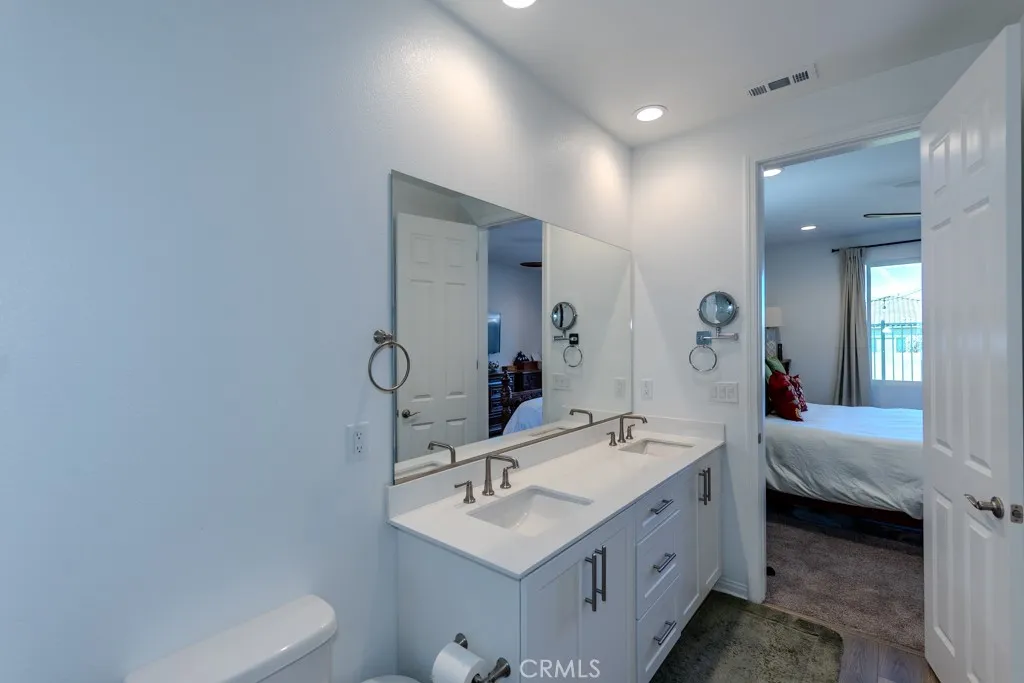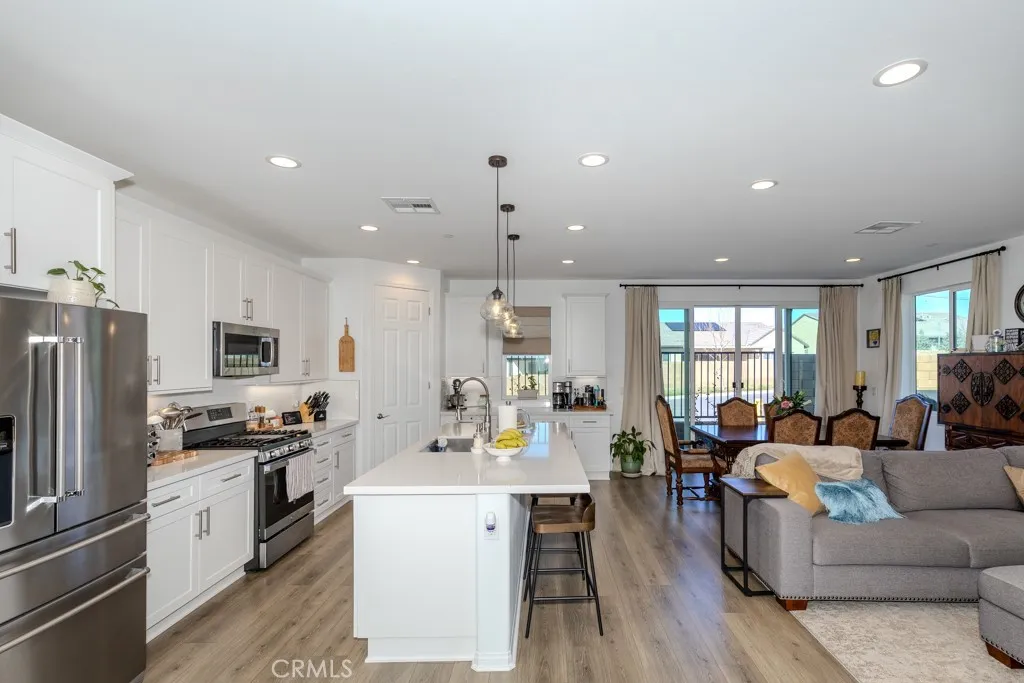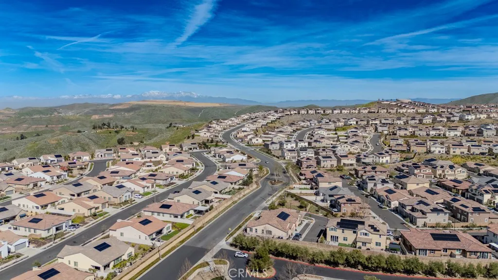 Welcome to your dream home in the guard-gated community of Skyview at Terramor. (Built 2024) seller spent over $70,000 in premium builder upgrades. This stunning upgraded single-story residence features fully paid solar and perfectly blends modern design with energy efficiency. This beautiful home offers 3 bedrooms, 2 bathrooms, and an attached two-car garage. The open floor plan seamlessly connects the kitchen, dining, and family rooms, ideal for both everyday living and entertaining. Oversized sliding glass doors frame gorgeous mountain views and fill the home with natural light. The gourmet kitchen showcases a spacious quartz island, top-of-the-line appliances, and elegant finishes. Seller invested significantly in premium builder upgrades. A combination of upgraded laminate flooring and plush carpet runs throughout, while ceiling fans enhance comfort in every room. The primary suite is a tranquil retreat featuring a walk-in shower also showcases quartz countertops and a generous walk-in closet. Additional energy-efficient features include a tankless water heater and Energy Star appliances. Terramor, named Master Planned Community of the Year by the Building Industry Association of Southern California (2018), offers resort-style amenities, more than 540 acres of protected open space, scenic views of Cleveland National Forest, 5 miles of trails, and 22 acres of parks. Conveniently located near the I-15 freeway, Glen Ivy Hot Springs, and shopping and dining at The Shops at Dos Lagos. Dont miss the opportunity to own an exceptional home in one of Coronas most desirable comm