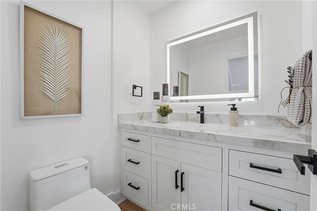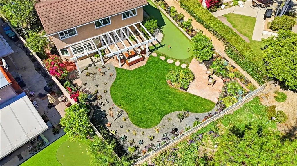 Enjoy privacy and elegance on a quiet street with no immediate neighbors in this beautifully remodeled 4-bedroom, 2.5-bath home on a 7,150 sq.-ft. lot. approximatry 2,300 sq. ft. of living space features a bright, open floor plan with cathedral ceilings, a remodeled kitchen with quartz countertops, breakfast bar, custom cabinetry, and new appliances, flowing seamlessly to the family room and oversized backyard. The backyard retreat offers multiple seating areas, lush lawns, a private putting area, patio cover, and scenic creekside views, perfect for entertaining. Recent upgrades include remodeled bathrooms, new flooring, fresh paint, designer light fixtures, and enhanced landscaping with planter areas, sprinklers, and side gates. Enjoy private Lake Mission Viejo access ($32/month) and easy access to Oso Creek Trail, golf, YMCA, pools, tennis, parks, shopping, dining, schools, and freeways. Move-in ready with modern upgrades, serene privacy, and panoramic views.