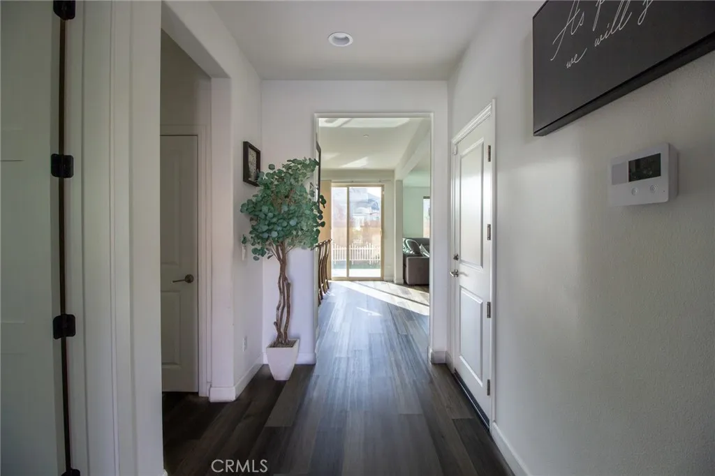 A Spanish-style facade welcomes you into Aura at Westridge, a gated community designed for comfort, light, and connection. Built by award-winning Pardee Homes, this residence showcases what is arguably one of the best floor plans in the neighborhood. The arched entry opens to rich oak flooring that flows throughout the main level. Just off the entry is a versatile main-floor bedroom or office, a bathroom, and a convenient coat closetideal for guests or a home office. The heart of the home is the expansive great room, seamlessly connected to the kitchen and dining area and filled with natural light. The gourmet kitchen is thoughtfully appointed with maple cabinetry, granite countertops, a six-inch backsplash, stainless steel appliances, recessed lighting, USB charging ports, a hidden waste drawer, and a Delta pull-out faucet. A large stainless steel sink and a generous (7) seven-foot center islandperfect for gathering and entertainingcomplete the space. A pantry adds extra storage, while the open layout provides wide views throughout the living areas. Upstairs, textured carpet in a calming linen tone runs throughout the second floor. The hallway leads to a laundry room, three secondary bedrooms, and a full bathroom. The private primary suite is designed for relaxation and easily accommodates a large bed and furniture. The spa-inspired bath features quartz countertops, dual vanities, custom maple cabinetry, a frameless glass shower enclosure, and a soaking tub, along with two spacious walk-in closets. The backyard offers a low-maintenance retreat with a concrete patio, turf l