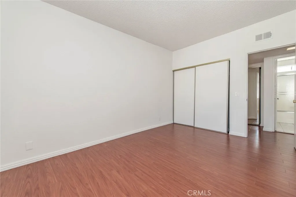 A Second level open layout high ceiling condo with balcony with view of the community green field and hillside. Ground level direct entry 2 car garage. Newly painted interior and wood flooring throughout the living area with Fireplace. One master bedroom suite and an additional bedroom with shared bathroom. HOA includes water and trash. Community with pool & spa, city park with playground, skatepark, and baseball field. Nearby Shopping and Market, easy drive to 60&57 freeway.