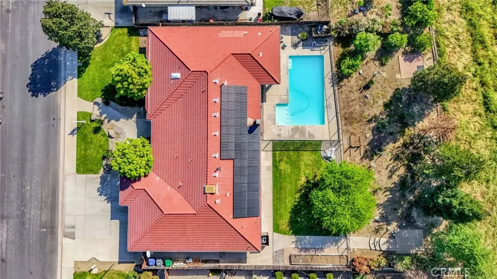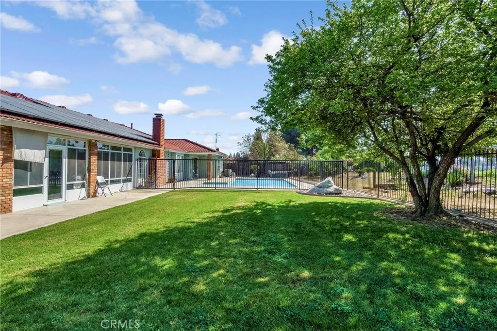 Located at 2436 Trevor Court in Madera, this well-maintained one-story residence offers approximately 3,383 square feet of living space with 5 bedrooms and 3 bathrooms, situated on a large lot with convenient access to nearby shopping, dining, and major roadways. The home features a spacious and functional floor plan with multiple living areas, including a formal living room, formal dining area, and a family room with a fireplace. The main living space showcases vaulted and beamed ceilings, creating an open and expansive feel. A sunroom provides additional flexible living space with natural light. The kitchen is designed for both everyday use and entertaining, featuring granite and travertine countertops, shaker-style cabinetry, stainless steel appliances, double ovens, a breakfast bar, peninsula, skylight, and a walk-in pantry. An informal dining area connects seamlessly to the kitchen and living spaces. The layout includes one isolated bedroom and bathroom with a private entrance, offering flexible use options. Additional interior features include multiple walk-in closets, a dedicated laundry/utility room with built-in storage and sink, two HVAC systems, two water heaters, a whole-house water filtration system, and leased solar. Exterior highlights include a tiled roof, 3-car garage with built-in storage and overhead racks, and a fenced backyard with a pool secured by safety fencing. The property backs to the Fresno River, providing added privacy and open views. Outdoor features also include a patio area, raised garden beds, and a low-maintenance yard layout. Additional f