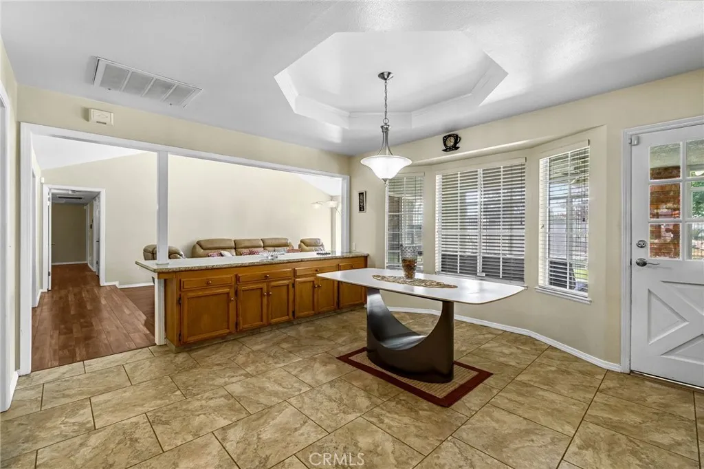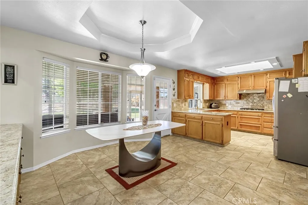 Conveniently located near popular retail stores, restaurants, and a major shopping center, this beautifully maintained 3,383 sq. ft. Mansionette offers space, comfort, and flexibility for a variety of lifestyles. Featuring 5 bedrooms and 3 bathrooms, the home includes an isolated bedroom and bathroom with a private entrance, making it ideal for a home office, guest suite, extended family, or game room. The home showcases granite and travertine countertops, stainless steel appliances, and skylights that bring in natural light throughout the home. The spacious layout offers a formal living room, formal dining room, cozy family room with fireplace, breakfast bar, and informal dining area. Generous bedroom sizes and multiple walk-in closets provide plenty of storage and comfort. Recent upgrades include one recently replaced AC unit, whole house water filtration system, and leased solar helping improve energy efficiency. The home is equipped with two total AC and heating systems, providing reliable climate control throughout the property, two 40-gallon water heaters, and an oversized utility room with built-in storage, countertop space, and utility sink, along with a large walk-in pantry. The 3-car garage offers extensive storage, including overhead racks and built-in closets. Flooring throughout the home includes porcelain tile, laminate, and carpet for both durability and style. Step outside to enjoy the sparkling pool, fully enclosed with security fencing, and a fully fenced backyard that backs up to the Fresno River, offering added privacy and scenic views. The backyard also