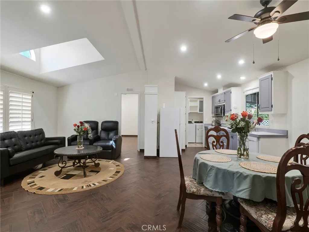 Welcome to this beautiful 3-bedroom, 2-bathroom manufactured home located in The Summit gated community in West Hills. Offering 1,143 square feet of comfortable living space, this home also features a brand new roof, providing added value and peace of mind. Upon entering, youre greeted by a bright and spacious open-concept living area, featuring quality tile wood flooring, recessed lighting, vaulted ceilings, and multiple skylights that fill the home with natural light. The inviting common area seamlessly blends living and dining spaces, enhanced by elegant plantation shutters throughout. The kitchen is well-equipped with all essential appliances, ample cabinetry, and easy access to an adjacent laundry roomperfect for everyday convenience. The thoughtfully designed floor plan places the primary suite in its own private wing, complete with a walk-in closet and an ensuite bathroom. On the opposite side of the home, youll find two generously sized guest bedrooms with ample closet space, along with a shared hallway bathroom. Step outside to enjoy the homes fantastic outdoor spaces, including an enclosed front patio and a large side patio featuring turf, pavers, and tall wood fencing for added privacyideal for relaxing or entertaining. The rear of the home offers low-maintenance rock landscaping, multiple storage sheds, and a flat paved area for additional outdoor use. The attached carport provides parking for three or more vehicles and includes an EV-compatible outlet for added efficiency and modern convenience. As part of The Summit community, residents enjoy access to a varie
