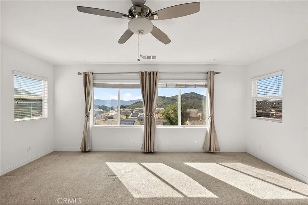 Nestled away within the exclusive, gated Canyon Hills Westridge community, this exceptional residence feels like a private slice of paradise. Perched on a premium lot, it captures breathtaking, panoramic views including Lake Elsinore and Canyon Lakea daily backdrop that turns every sunrise and sunset into a serene escape. Impeccably maintained and styled like a model home, this 4-bedroom, 3-bath retreat welcomes you with an airy upstairs loft, perfect for relaxation or inspiration. The kitchen is a true culinary sanctuary, adorned with rich espresso cabinetry, gleaming granite countertops, and high-end GE Appliancesincluding a double oven and an expansive island designed for gathering, entertaining, and creating unforgettable moments. Host elegant dinners in the formal dining room, complete with a butlers pantry and abundant storage, or unwind in your luxurious primary suitea tranquil haven where spa-like comfort meets everyday living. Soak in the tub as if on vacation, enjoy the separate shower, dual vanities, and a spacious walk-in closet designed for indulgence. Step outside to a beautifully designed, low-maintenance backyard featuring a covered patioperfect for year-round enjoyment as you take in sweeping views. Inside, thoughtful touches like high ceilings, custom lighting and ceiling fans. Beyond your doorstep, the community invites you to live the resort lifestyle, with amenities including a scenic 2-acre park, a dedicated dog park, sparkling pool and spa, outdoor showers, BBQ areas, fire pits, and sports courts. This is more than a homeits a destination, ready to we