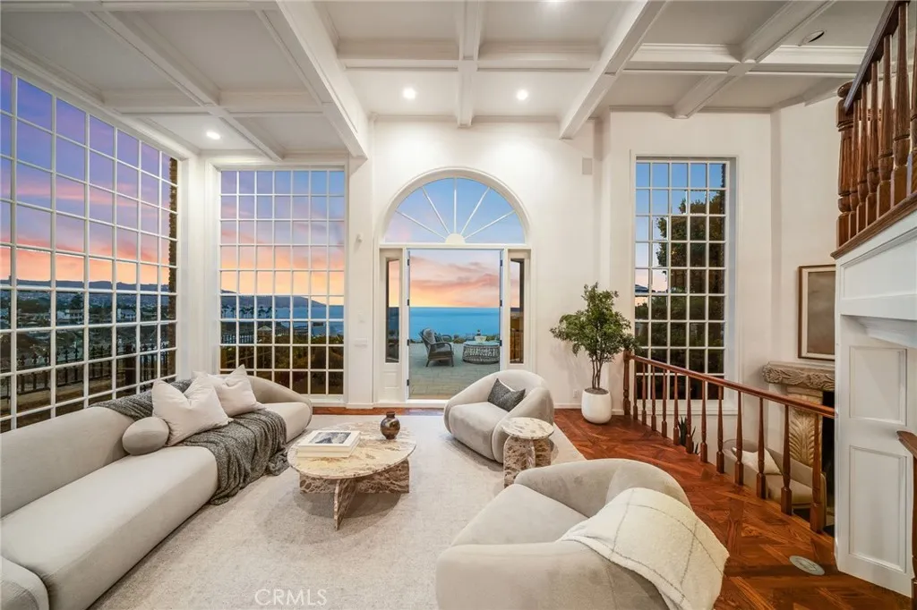 Magnificently situated on the prized north-western point of Crescent Bay, Chateau du Soleil overlooks the glistening Pacific Ocean, the picturesque curve of Crescent Bay, and a view immortalized countless times in paintings and photographs. This is an extremely rare opportunity to own a legacy estate property with only four previous owners stretching back to the nineteenth century. Anchoring the estate is an expansive oceanfront lawn and gardens a unique feature rarely found in oceanfront estates along this coast. This generous space provides a special sense of serenity and offers a level of privacy uncommon in oceanfront living. Whether used for entertaining, relaxing or simply taking in the ever-changing light over the water or whale-watching, the space feels like your own private overlook park. The views from inside the home are epic - framed by towering two-story 'windows on the Pacific'. With substantial interior square footage and a forward location on the point, the home would be difficult (if not impossible) to replicate under todays coastal development restrictions. Currently configured as a four-bedroom home with an abundance of additional flexible-use rooms, the floor plan and size easily lend themselves to a variety of configurations depending on the new owners needs. Also unusual in oceanfront properties, this home has three oversized garage bays and driveway parking. For those unfamiliar with Laguna Beachs Crescent Bay, this stretch of sand is stunningly beautiful and never without something interesting to watch. Waves crash on the tide pools in endlessly int