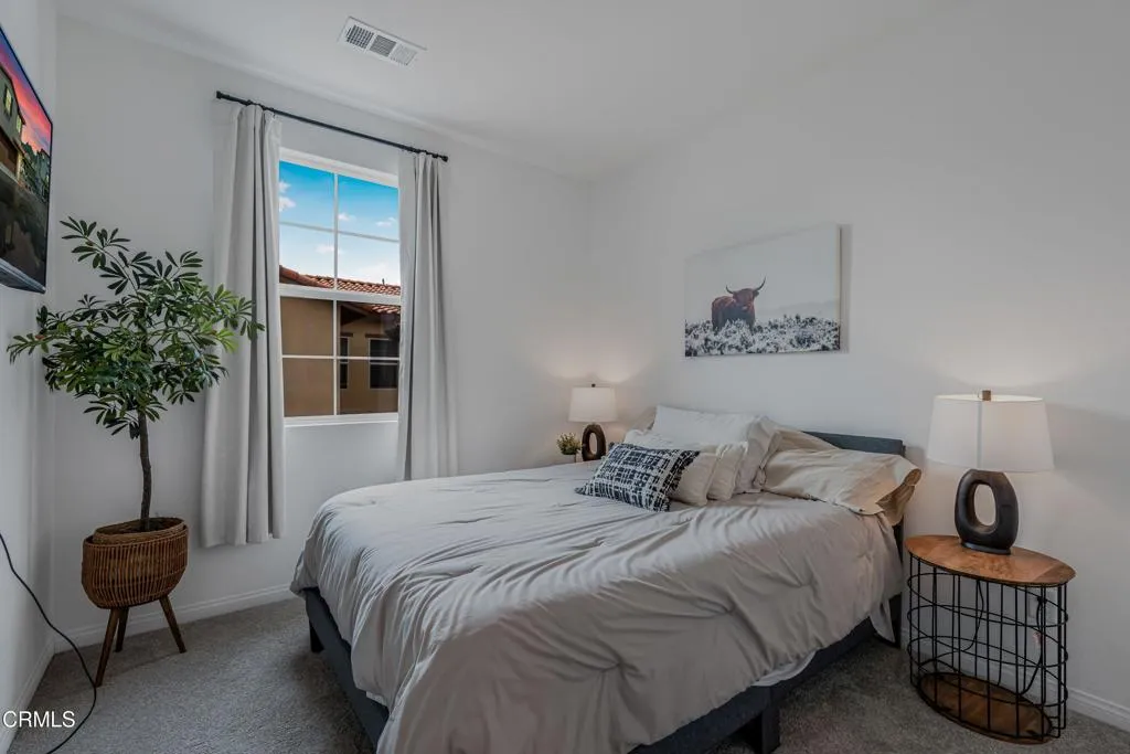Welcome to this beautifully upgraded four bedroom, two and a half bath home offering approximately 1,725 square feet of thoughtfully designed living space in the sought-after Anacapa Canyon community of Camarillo. Positioned as a desirable end unit, the home benefits from additional windows that fill the interior with natural light and highlight the area's pleasant coastal climate.The main living area centers around a stylish, upgraded kitchen that blends functionality with modern design. Features include custom countertops and backsplash, a large island with shiplap accents, a deep recessed sink, stainless steel appliances, and bar seating for casual dining. Tile flooring spans the main level, where built-in bench seating with hidden storage creates a warm and practical gathering space. A pantry and additional storage closet add convenience, while the open layout seamlessly connects the kitchen, dining, and living areas ideal for entertaining.Upstairs, the primary suite offers a peaceful retreat with a spacious walk-in closet and an upgraded ensuite bathroom complete with dual vanities, custom tile finishes, and a walk-in shower with built-in bench. Scenic mountain views enhance the sense of openness and relaxation. The additional bedrooms and a conveniently located upstairs laundry area complete the second level.Outdoor living is equally inviting, featuring a built-in fire pit and seating area perfect for both quiet evenings and hosting guests. Additional highlights include central air conditioning, a direct access two car garage with finished flooring, a built-in bar wit