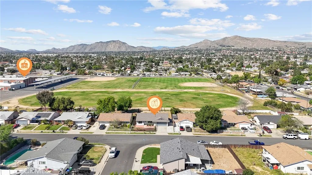 Welcome to this beautifully updated single-story home offering 4 bedrooms and 2 bathrooms in a well-established Moreno Valley neighborhood. With thoughtful updates completed in 2021, this home blends modern finishes with everyday comfort. Step inside to find an open and inviting layout with updated flooring, neutral paint, recessed lighting, and abundant natural light throughout. The kitchen features stylish cabinetry, ample counter space, stainless appliances, and a dining area that opens directly to the backyard, creating an easy flow for gatherings and daily living. The flexible floor plan includes a private fourth bedroom separated from the others, ideal for a home office, guest room, or multi-generational living. Both bathrooms have been refreshed, and the home has been well maintained inside and out. One of the standout features of this property is the sense of openness behind the home. Backing to a school field with no two-story neighbors directly behind, youll enjoy expanded views and distant hills that create a bright and airy backdrop. The spacious backyard offers room to relax, garden, or design your own outdoor retreat while taking in the open surroundings. Conveniently located near schools, parks, shopping, and commuter routes, this move-in ready home offers space, versatility, and scenic surroundings all in one.