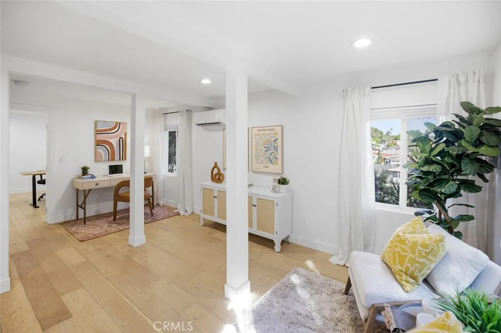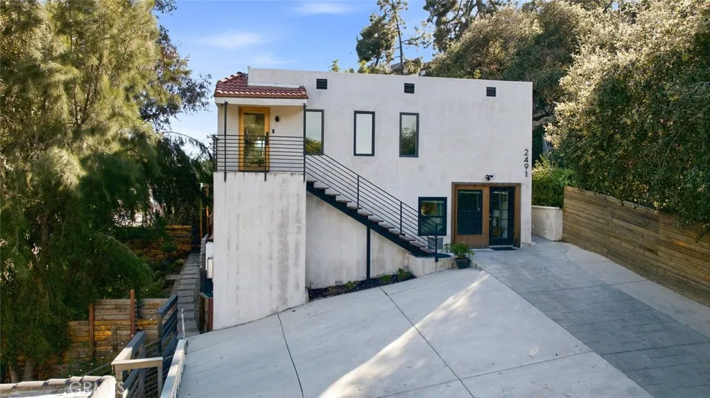 Perched at the end of a quiet cul-de-sac in the Silver Lake hills, 2491 Ivan Hill Terrace is a private hillside retreat offering architectural flexibility, layered outdoor spaces, and meaningful system upgrades in one of the Eastsides most sought-after neighborhoods. Currently configured as a 4 bedroom, 3 bath single-family residence, the layout adapts effortlessly to entertaining, creative workspace, remote work, or multi-generational living. Reimagined with clean contemporary finishes, the open living and dining areas are filled with natural light and connect seamlessly to a modern kitchen with quartz countertops and stainless steel appliances, while updated baths and streamlined detailing create a cohesive, move-in-ready aesthetic. Significant improvements completed in 2021 include roof replacement, HVAC installation, electrical upgrade and rewiring, plumbing repipe, kitchen remodel, window replacement, and bathroom updates. The lower level introduces substantial additional living space that expands the homes versatility and invites imaginative use as a studio, guest suite, office, or media retreat. In 2023, a permit application was submitted for conversion of the lower level into a proposed 568 square foot ADU and 496 square foot Junior ADU totaling approximately 1,064 square feet, the application was not completed, creating potential for a future owner to pursue completion and further enhance value, subject to buyer verification of status and feasibility with LADBS. Additionally, set on a 6,520 square foot lot elevated above the street and framed by mature eucalyptus,