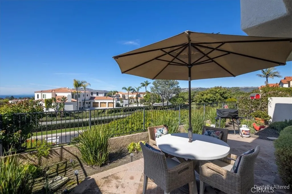 Panoramic and Shimmering Ocean Views!!! This beautifully situated home faces Southwest, offering incredible Ocean and Catalina Island views from both levels (downstairs and upstairs, plus the yard). It is located in Monarch Beach, a 24-hour guard-gated community within walking distance to Salt Creek Beach, The Strand Beach Park, Waldorf Astoria Resort & Spa, Monarch Links Golf Course, and the Ritz Carlton Laguna Niguel. This is a premier location in Dana Point's coveted and beautiful Monarch Beach neighborhood within the Antigua tract. This home is in excellent condition and lovingly cared for by the original owner and a previous long-term tenant. The lovely residence was completely painted from top to bottom inside in a crisp, fresh white paint. This home boasts two-story ceilings, is extraordinarily light and bright, with raised panel oak cabinetry, hand-set tile counters, Jenn-Air oven and microwave combo, hoodless electric cooktop, dishwasher and refrigerator, newer LED recessed lighting, newer ceiling fan with lights in all bedrooms, remote control shades in kitchen and dining areas, marble gas fireplace in the living room with fire-glass, eat-in kitchen area plus dining room, large living area with dramatic high ceilings, Dupont Corian counters in bathrooms plus mirror and lighting updates, and washer-dryer hookups in the direct access two-car garage. The primary bedroom suite upstairs has an ocean-view balcony with panoramic views in both directions. The bathroom has a nice walk-in closet, dual vanity sinks, a soaking tub, and a walk-in shower. Amazing Sunset Views!!