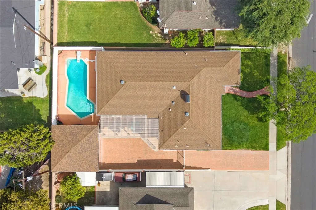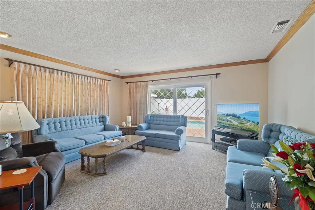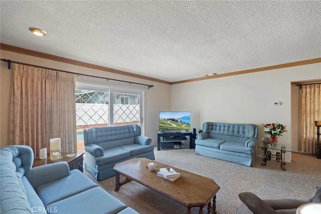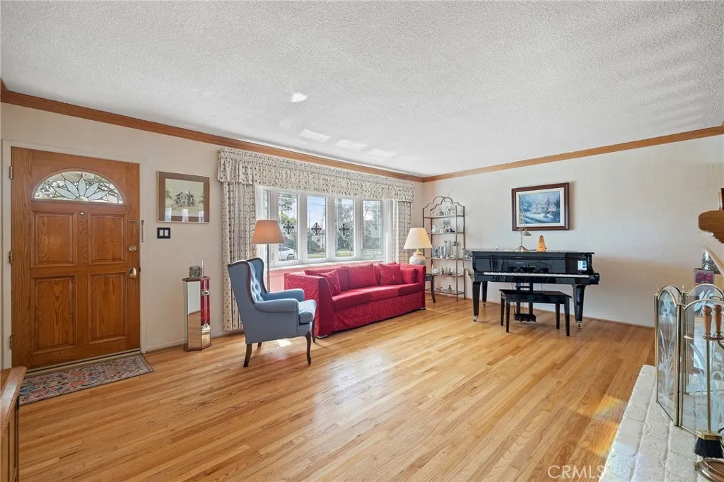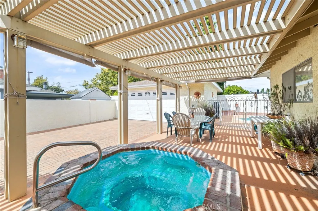 Single-story pool home featuring 5 bedrooms and 2 bathrooms with approximately 2,360 square feet of living space on a 7,698 square foot lot. Built in 1957, this home includes central air conditioning and heating, hardwood flooring and carpet, and an individual laundry room. Interior living areas include a formal living room with gas-burning fireplace and bay window, formal dining room, family room with wet bar, and a kitchen with tile countertops and appliances including a Kitchenaid gas 5-burner cooktop, built-in Kitchenaid oven, LG built-in microwave, and Whirlpool dishwasher. Custom cabinetry is featured in the kitchen, office, and garage. Flexible floor plan with one bedroom currently used as an office and another used as a crafts room. One bathroom includes an accessible bathtub designed for safer bathing. Detached 2-car garage with built-in cabinets and epoxy flooring. Exterior features include a gated pool, covered patio with spa, long driveway, and automatic sprinkler system in the front yard. Conveniently located near shopping, restaurants, and everyday amenities, and within walking distance to Whittier Christian High School.