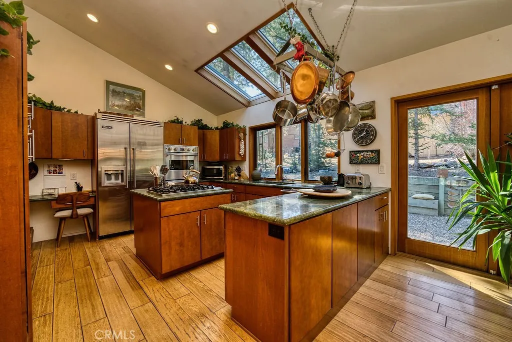 Offered for the very first time, this extraordinary one-story residence in the Los Padres National Forest is the personal home of acclaimed ceramic artist Brent Bennett designed by his hand, built to his vision, and embedded throughout with his irreplaceable work. Set on a rare flat lot at the front of a private cul-de-sac, the three-bedroom, two and a half bathroom home is as much a living artwork as it is a dwelling: where architecture, fine craft, and the wild beauty of one of California's great national forests meet in seamless, singular harmony. Bennett designed this luxurious, modern forest home to defy convention walls converge and diverge at deliberate degrees, creating interior spaces that feel organic, dynamic, and perpetually alive. Rooms breathe, light moves through them in unexpected ways, and floor-to-ceiling windows in the Great Room along with skylights in the bathrooms and kitchen flood the home with natural light. A museum-quality track and recessed lighting system maintains gallery-level illumination day or night, honoring the ceramic works within because no feature is more significant, or more unrepeatable, than the ceramic works Bennett embedded into its very fabric. The hand-made foyer floor tile, one-of-a-kind glazed vanity sinks, and fully tiled hand-designed relief ceramic shower enclosure are not installations that can be removed and rehung they are the home, and they convey with the property. The kitchen features a complete Viking Professional suite including an island range, full-size refrigerator, and dishwasher, balancing professional-grade