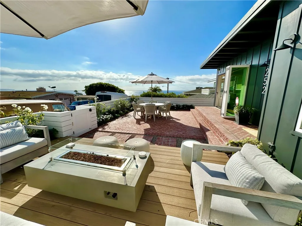 Sweeping Coastline views from this darling remodeled, single-level home just above Heisler Park and Shaws Cove Beach. This completely remodeled, turn-key home is beachy-chic, with all-new designer decor and everything you need for a luxurious escape to enchanting Laguna Beach. Sunlight-filled, open-concept floorplan has walls of windows that pocket open and flow from the charming Living room - with high-beamed ceilings and cozy fireplace - to an expansive outdoor entertaining area (complete with al fresco dining for six and patio seating nestled in a lovely, enclosed garden). Almost all rooms enjoy the Catalina Island ocean views. The Chef's quality kitchen opens to the dining area and features Top-of-the-line appliances and beautiful built-in cabinetry. The dining room also looks to the view and seats 6 guests. The Primary suite has a king-sized bed overlooking the patio and dreamy coastline views. The ensuite bathroom has a step-in shower and is equipped like a luxury spa. The secondary suite has a Queen bed and overlooks the back patio and ocean views to the north. A third guestroom has a convertible day-bed that becomes a King-sized bed when pulled out. The second bathroom also features a step-in shower. The Back Patio has a BBQ area and a wonderful entertaining space. This quintessential Laguna Cottage is within walking distance of the beach and town, the Boat Canyon shopping center (with Pavillions, Yoga and Fitness centers, and a half dozen restaurants) just half a block away. Riddle Field Park is at the end of the street. Limited dates are available, summer rate is