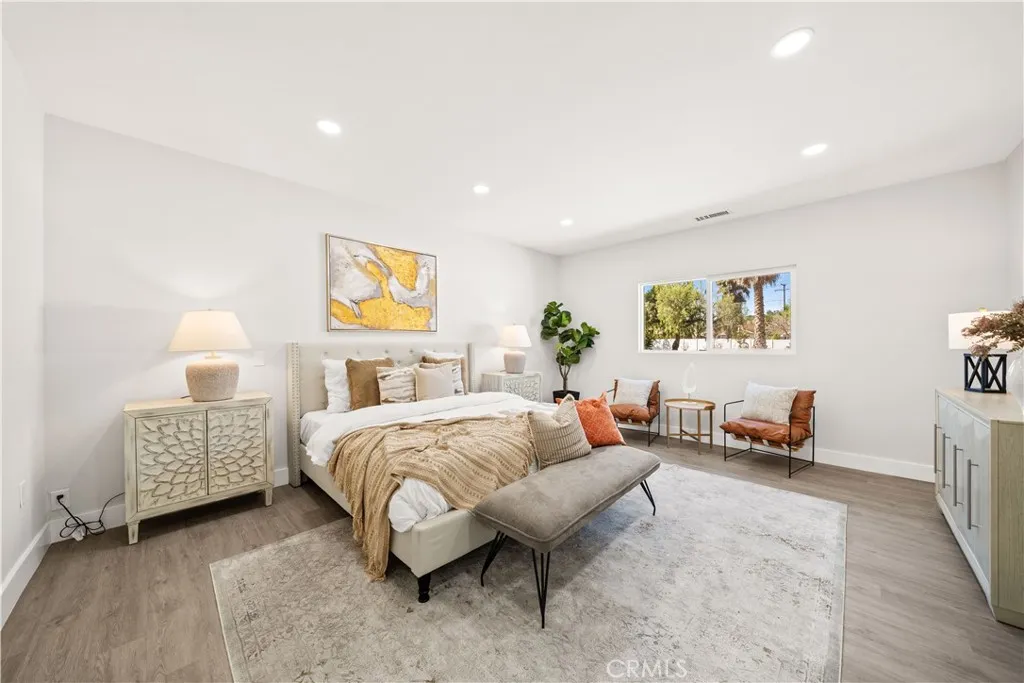 Fully renovated single-story ranch home located on a quiet cul-de-sac in a prime Rowland Heights neighborhood. This move-in ready property offers 5 bedrooms, an office, and 3.5 bathrooms, ideal for multigenerational living or rental income potential. Features include double-door entry, spacious living room with fireplace, separate family room with second fireplace, and an open gourmet kitchen with white cabinetry, stainless steel appliances, and quartz countertops. Spanish architectural details throughout. Includes two master suites plus three additional bedrooms. One oversized master suite offers a studio-style layout with its own living area and separate entrance, suitable for extended family or rental use. Both master suites feature large windows with views of the backyard greenery. A private office near the front entry includes a large window overlooking the peaceful neighborhood. Situated on a large, flat, and usable lot with ADU potential. Gated front yard and oversized paved driveway provide ample parking for multiple vehicles and RV parking. Located within Rowland Unified School District, within walking distance to Blandford Elementary School, HK Market, shops, restaurants, and parks. Upgrades in past 2 years include: new kitchen all new bathrooms new windows/doors new tile flooring repiping new electrical wiring tankless water heater LED lighting, approx 70% roof replacement new security alarm system with monitoring Interior & exterior painting new garage door.