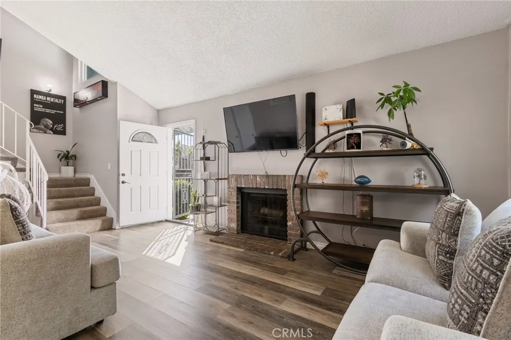 Welcome to this beautifully maintained 3-bedroom, 2.5-bathroom residence located in a desirable gated community in the heart of Newhall, offering the perfect blend of comfort, style, and exceptional convenience. This charming two-story condo features a thoughtfully designed layout ideal for both relaxed everyday living and entertaining. Step inside to a bright and airy living room with soaring vaulted ceilings, stylish wood-style flooring, and a cozy brick fireplace that creates a warm and inviting atmosphere. The open living and dining areas flow seamlessly into the kitchen, offering generous cabinetry and ample counter space, perfect for both casual meals and gatherings with family and friends. One of the standout features of this home is the private backyard and patio, a rare find for a condo and an ideal space for outdoor dining, entertaining, or simply enjoying Southern Californias year-round sunshine. Upstairs, spacious bedrooms provide comfort and privacy, including a well-appointed primary suite. The home also features 2.5 bathrooms, including a beautifully updated bathroom with modern tile finishes and a walk-in shower. Beyond the home itself, the location truly shines. Conveniently situated just minutes from the Interstate 5, commuting throughout the Santa Clarita Valley and into Los Angeles is effortless. Residents will also enjoy close proximity to shopping centers, restaurants, grocery stores, parks, and everyday amenities, making daily life both convenient and enjoyable. Combining vaulted ceilings, private outdoor space, and an unbeatable central location, thi
