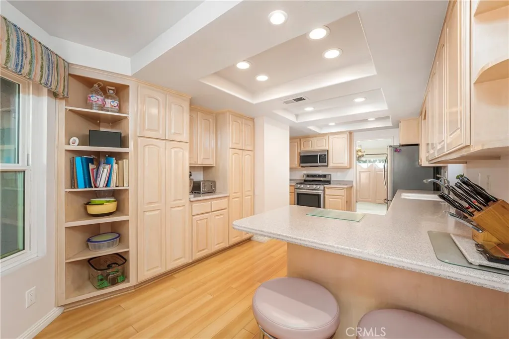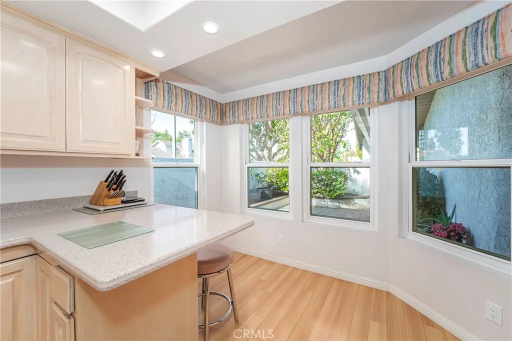 Tucked away on a quiet cul-de-sac in desirable Mission Viejo, this beautifully maintained single-level home offers vaulted ceilings, abundant natural light, and exceptional privacy. The spacious living room is anchored by a striking stone fireplace and dramatic ceiling height, creating an airy and inviting atmosphere. Dual sliding doors open to the private wraparound yard, seamlessly blending indoor and outdoor living. The redesigned kitchen features stainless steel appliances, generous counter space, recessed lighting, and a bright breakfast nook overlooking the patio. Thoughtfully laid out for both everyday comfort and entertaining. The split-bedroom floor plan offers flexibility, with a private primary suite and two additional bedrooms ideal for guests, family, or a home office. Step outside to a fully enclosed, walled yard that wraps around the home, offering multiple seating areas and a mature sweet guava tree at the entrance a rare and charming touch. The expansive hardscape provides low maintenance and year-round usability. Perfect for commuters, the home offers approximately three-minute access to the I-5 freeway while maintaining the quiet feel of a tucked-away neighborhood. Shopping, dining, and fitness are just moments away. Move-in ready and meticulously cared for, this home delivers light, privacy, and convenience in one of Mission Viejos most established neighborhoods.