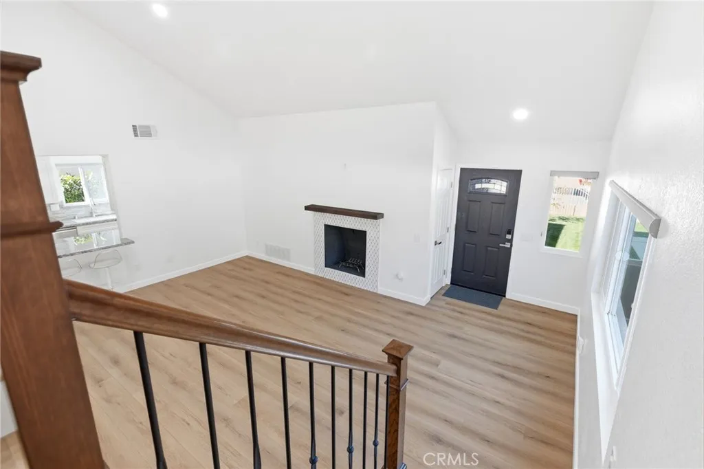 Welcome to 25295 Wendy Way in Moreno Valley, California a beautifully remodeled starter home you wont find anywhere else! This 3-bedroom, 2-bathroom, 1,227 sq ft home is move-in ready and brimming with charm and modern updates. From the curb, enjoy lush grass, vibrant planter flowers, and a crisp white vinyl fence welcoming you in. Step inside to an updated front door and be greeted by gorgeous laminate wood flooring, large modern windows with custom ceiling-to-floor coverings, and recessed lighting throughout. The living room features a stylish fireplace with updated tile dcor and a floating shelf mantle, perfect for cozy gatherings. The kitchen shines with white shaker cabinets, stunning granite counters, a sleek backsplash, and stainless steel appliances included for the new owner, complemented by chrome hardware and elegant modern finishes. Every bedroom has updated ceiling fans and recessed lighting, and one bedroom downstairs includes a private sliding door leading to the backyard. Both bathrooms have been fully remodeled with new cabinets, quartz counters, updated tile showers, and modern hardware. Upstairs, the two spacious bedrooms are accessed via a wood staircase with elegant wrought iron railings. A small bonus room adds versatile space that can be used as an office, workout area, gardening nook, or multi-functional space to fit your lifestyle. Step outside to a backyard oasis featuring a vinyl-covered lattice patio with a fan, retaining walls with beautiful plants and trees along the updated vinyl fence, and a private gated area to secure vehicles. Convenientl
