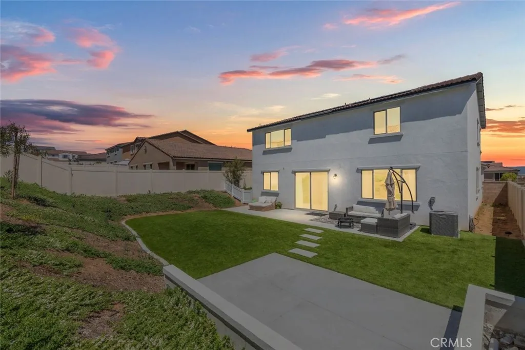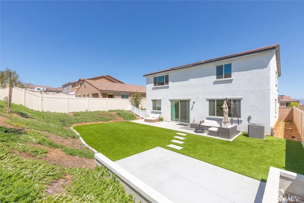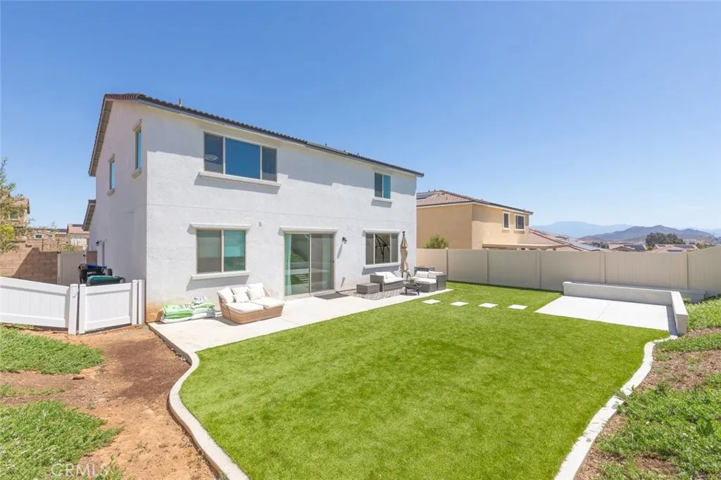 Welcome to 25367 Circle Stone Dr, Menifee a stunning, nearly new home built just two years ago! This spacious 4-bedroom, 3-bath residence offers modern living at its finest, including a convenient downstairs bedroom perfect for guests or multigenerational living. Step inside to find upgraded vinyl wood flooring flowing through the main living areas and an open floor plan that connects the large family room to a chef-inspired kitchen featuring granite countertops, stainless steel appliances, double ovens, and a generous island perfect for entertaining. Upstairs, youll find a spacious loft offering extra space for a playroom, office, or movie area. Energy efficiency shines here with paid-off solar panels and a battery backup system, keeping your utility bills low. Outside, enjoy a large backyard with beautiful turf, ready for gatherings, games, or relaxing evenings under the stars. This home truly has it all modern upgrades, energy savings, and plenty of space inside and out. Dont miss your chance to call this Menifee gem home!