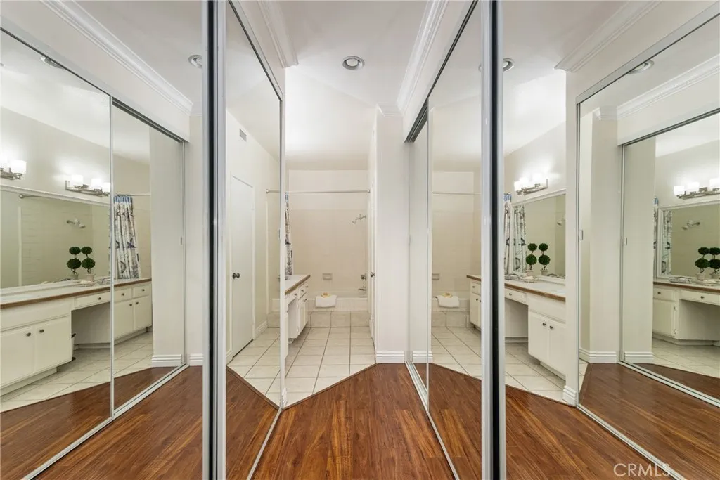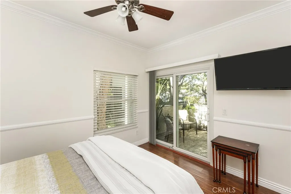 Highly renovated ground-level end unit in the prestigious gated community of Woodlake. This rare offering features two private patios and a premium, exceptionally private location. Step inside to an open floor plan with soaring ceilings, wide-plank laminate flooring, crown molding, recessed lighting, and a cozy fireplace. Brand-new, high-end Renewal by Andersen windows and sliding doors fill the home with natural light while enhancing energy efficiency. The remodeled kitchen includes stainless steel appliances, custom soft-close cabinetry, and elegant quartz countertops. A charming breakfast nook opens to a tranquil private patioalso accessible from the second bedroomcreating an ideal space to unwind. The beautiful primary bathroom offers a spacious vanity with abundant storage, a sunken tub and shower, and recessed lighting. The second bathroom is also a full bathroom with a tub and shower combo. The generous living room, with its impressive ceiling height, extends to a large private side patio overlooking a serene stream and waterfallperfect for entertaining or everyday relaxation. A washerdryer closet and an additional exterior storage closet provide exceptional convenience. This home includes one assigned carport, one assigned uncovered parking space adjacent to the building, and ample guest parking. The community is known for its lush landscaping, mature trees, ponds, waterfalls, and peaceful water features. HOA amenities include a pool, spa, exterior maintenance, water, trash, termite service, and exterior electricity. A beautifully updated homethoughtfully designed a