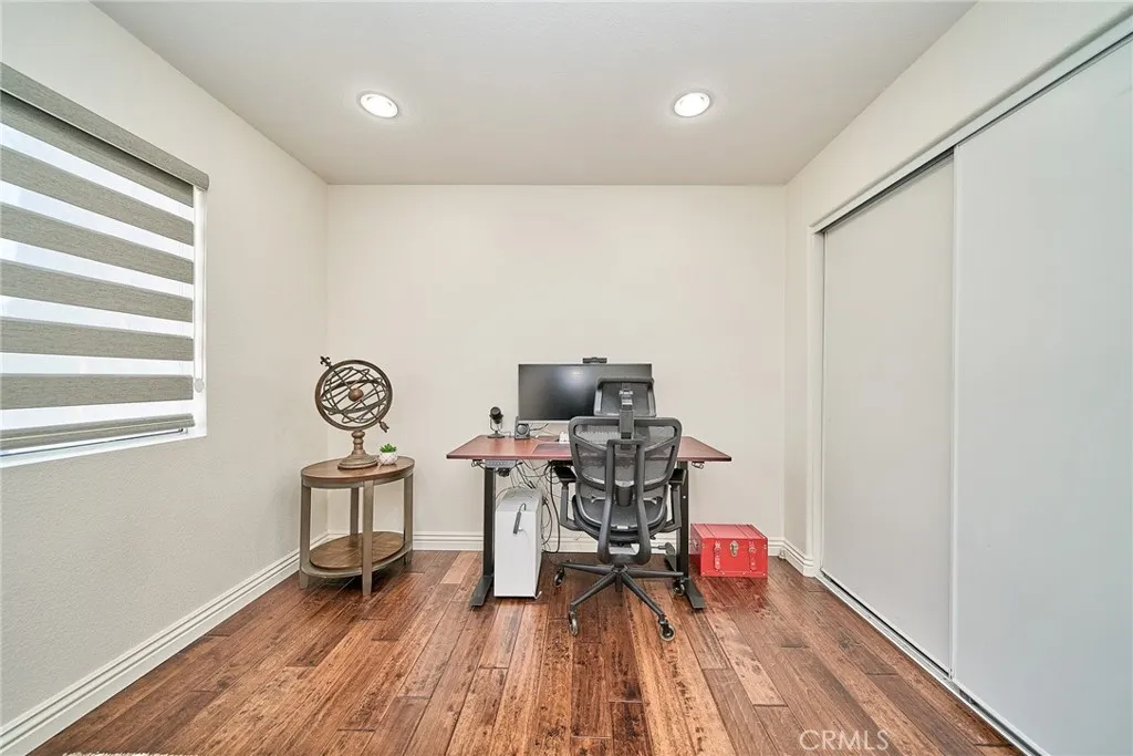 Bright & Charming 4-Bedroom Home in Prime Stevenson Ranch! This beautifully maintained 4-bedroom, 3-bathroom home features a highly desirable layout with one bedroom and a full bath conveniently located downstairs. The high-ceiling entry enhances the open and airy feel of the home. The spacious open family room includes a cozy fireplace, perfect for relaxation. In 2022, NEW INTERIOR & EXTERIOR PAINT, NEW AIR CON and NEW KITCHEN upgrade done. Enjoy the elegance of high-quality wood flooring throughout, along with a brand-new kitchen counter top and cabinets. The laundry room is conveniently located near the garage entrance through the kitchen. The backyard is designed for both ease of maintenance and enjoyment, featuring an EXTENDED CONCRETE PATIO for a clean and modern look, while a well-sized lawn provides space for gardening. Additionally, the home comes with a PAID-OFF SOLAR SYSTEM, offering energy efficiency and savings on electricity bills. Located within walking distance to an elementary school and close to shopping centers and freeway access, this home offers an unbeatable location. Very well maintained and move-in ready!