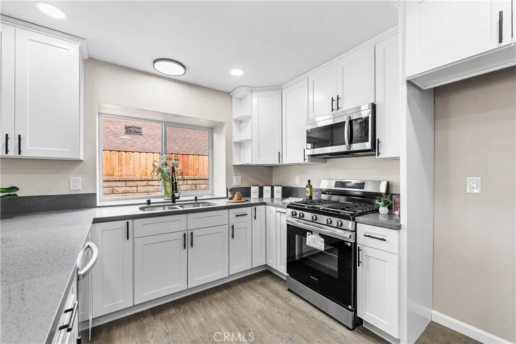 This beautifully remodeled single-story home features 5 bedrooms and 2 bathrooms, offering a picturesque view of the city. The interior and exterior have been fully renovated, including new paint, flooring, and fixtures throughout. The home boasts a modern fireplace in family room, creating cozy gathering spaces. New windows allow natural light to fill the rooms, while new appliances add convenience to the recently remodeled kitchen new cabinets & new quartz countertop. Bahtrooms have new vanities, new quartz couintertop, new sink, new shower, and new fixtures. Situated conveniently close to freeway access, schools, and shopping centers!!! Come preview this rare property offering today, you'll be pleasantly surprised!!!