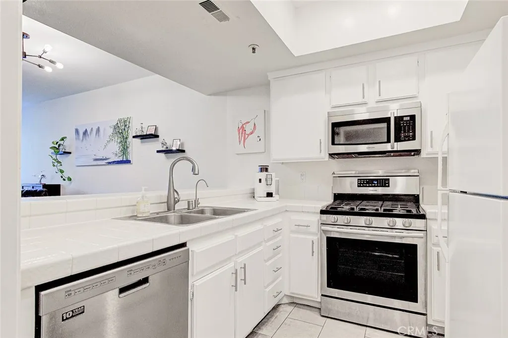 Welcome to resort-style living in the heart of Torrance. This beautifully maintained, single-level condominium in the prestigious Windemere Community delivers the perfect blend of comfort, security, and lifestyle. Pull up to your 24-hour gated entrance and leave the stress of the day behind. Wind through lush, professionally landscaped gardens to your building, where secure basement parking and direct elevator access make every arrival effortlessly rain or shine, early morning or late night. Step inside to a light-filled, open-concept layout with a seamless flow between the living room, dining area, and modern kitchen. The kitchen features white cabinetry and a generous breakfast bar that seats six perfectly for casual dinners or your morning coffee ritual while the spacious living room with fireplace opens directly onto a covered balcony, your own outdoor retreat at the end of a long day. The spacious primary suite accommodates a king-size bed, a wardrobe, bookshelves, and a desk. The primary suite has two closets with mirrored sliding doors. The primary bathroom has a vanity area, and an updated en-suite bathroom with soaking tub/shower combination behind the private door. The secondary bedroom is light and bright, and features its own mirrored closet, ideal as a guest room, home office, or creative space with a full guest bathroom and in-unit laundry conveniently located just across the hall. The current carpeted floor will be replaced by a brand-new luxury vinyl floor. Step outside your building, the Windemere Community becomes your personal resort. This property is jus