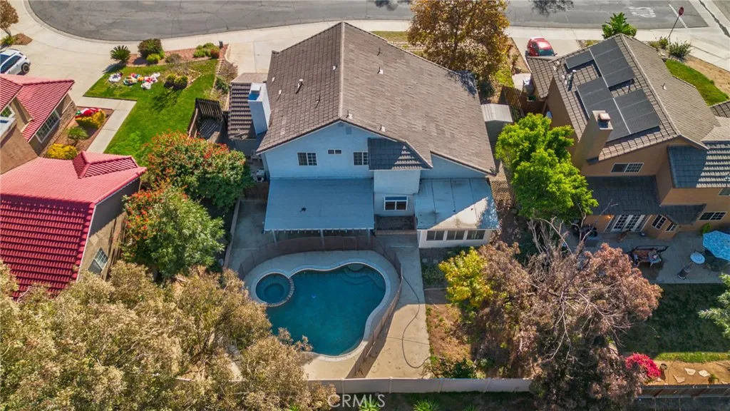 Welcome to this highly sought-after North Moreno Valley pool home offering 3 bedrooms, 2.5 bathrooms, and 1,930 sq. ft. of living space on a 7,841 sq. ft. lot. This home features tall ceilings, abundant natural light, and a welcoming layout that includes a formal living room, dining area, and a cozy family room with a fireplace. The open kitchen overlooks the backyard and offers granite countertops, a kitchen island, a breakfast bar, and plenty of cabinetry and counter space. A large bonus sunroom downstairs provides the perfect space for a home gym, office, or additional living area. Upstairs, youll find all three bedrooms, including a spacious primary suite with a walk-in closet and an updated en-suite bathroom featuring a refreshed shower and tub. The home also includes ceiling fans throughout, located in a cul-de-sac, a three-car garage, RV parking, and no HOA or Mello-Roos taxes. The private backyard is perfect for entertaining and features an upgraded pool and spa with safety fencing, a covered patio, and a grass area. Located in a desirable neighborhood in North Moreno Valley near Palm Middle School and Northridge Elementary, this home offers comfort, convenience, and a true California lifestyle with your own private pool oasis.