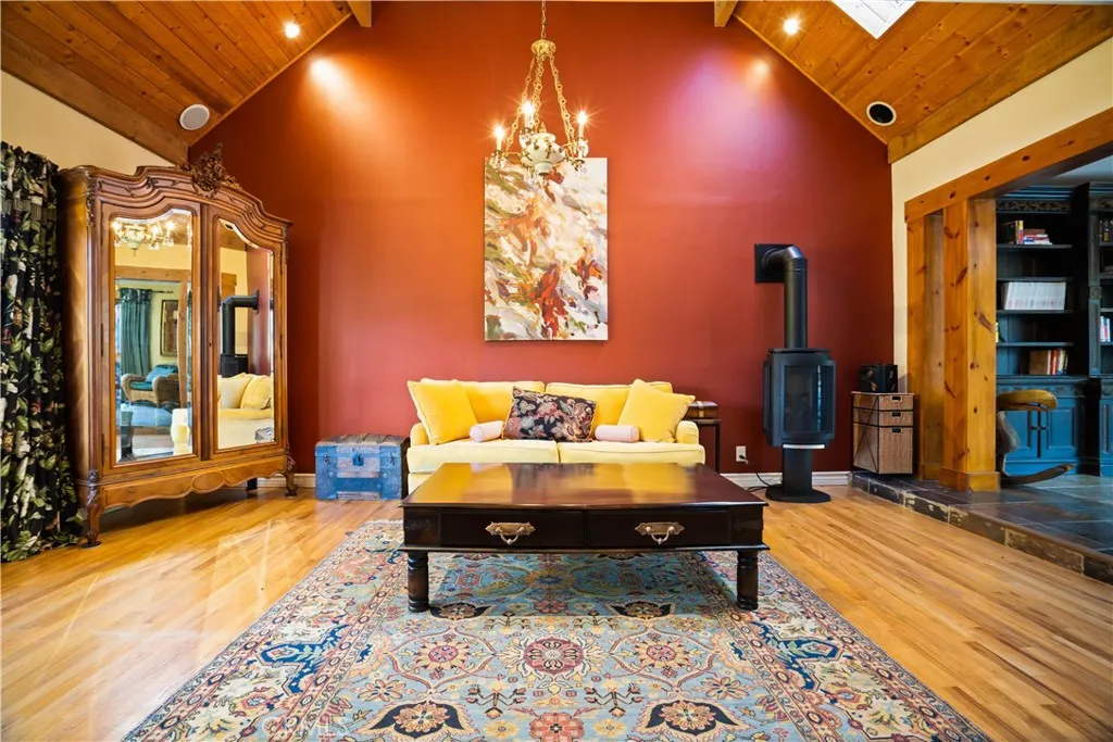 Tucked away on a private cul-de-sac in the Malibu Hills, this ivy-covered country cottage offers four bedrooms, three bathrooms, and sweeping mountain views on a secluded ~ acre lot. Blending charm with modern upgrades, the home features a designer gourmet kitchen with copper hood and sink, granite island, and a 500-bottle wine refrigerator, along with two wood-burning fireplaces, a mix of tile and wood flooring, and a converted garage gym. Designed for indoor-outdoor living, the expansive grounds include mature citrus trees, a full-length second-floor deck, and multiple entertaining areas. The backyard is a true retreat, highlighted by a 2022 PebbleTec pool and spa with rock waterfalls, outdoor sauna and shower, and a covered patio with retractable walls and heaters. Additional features include fully paid solar, updated HVAC (2025), new main water line (2018), Sonos indoor/outdoor sound system, EV charging, water softening system, two large storage sheds, and a composition shingle roof. Approved plans and permits for an ADU and expansion offer significant upside. Located just minutes from both Malibu and Calabasas, this property combines privacy, luxury, and convenience.