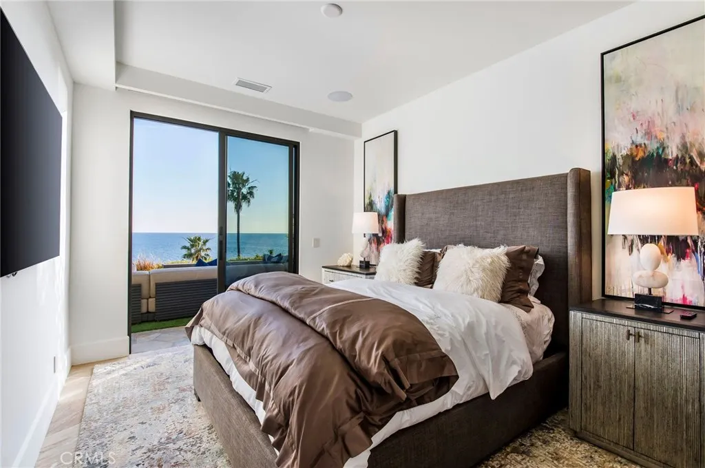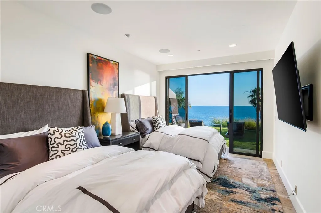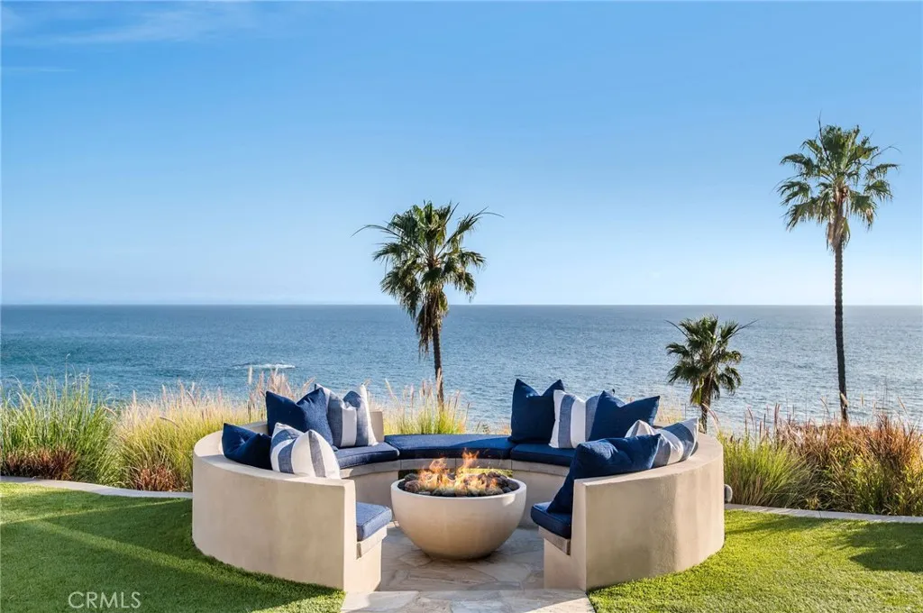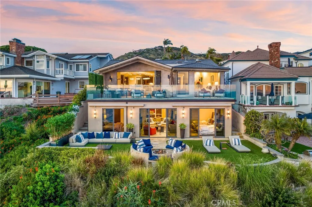 Experience the allure of South Lagunas coveted Three Arch Bay in this newly furnished contemporary bluff front home. A private, guard-gated community offers exclusive access to a private beach and community amenities. Designed by Brion Jeanette and completely rebuilt in 2013, this estate underwent a refreshing update in 2022. The well-thought-out floor plan includes a main-level master suite plus 4 bedrooms and a bonus room. Drive up the long driveway to find ample parking and a three-car garage with an elevator leading to the first level. The private gated entry welcomes you to an entertaining courtyard boasting a waterfall spa, fire pit, and outdoor kitchen with a built-in BBQ and teppanyaki grill. A guest casita with a separate entry and a fully equipped home office enhance the propertys versatility. Glass double doors lead to the main level, showcasing expansive floor-to-ceiling Pacific Ocean views. Revel in the master suite with new hardwood floors, a walk-in closet, and a marble master bath with a steam shower. The main level also features a guest bath, a fully equipped kitchen with state-of-the-art appliances, a dining room, and a living room with a built-in bar. Bi-fold glass doors open onto the oversized deck, creating a seamless indoor/outdoor living space where you can watch dolphins, enjoy sunsets, or keep an eye on the kids playing below on the private beach. Descending to the lower level reveals two more ensuite bedrooms with ocean views, a bonus room, laundry, guest bath, and an entertainment/media area with a kitchenette/bar. This level opens onto the genero