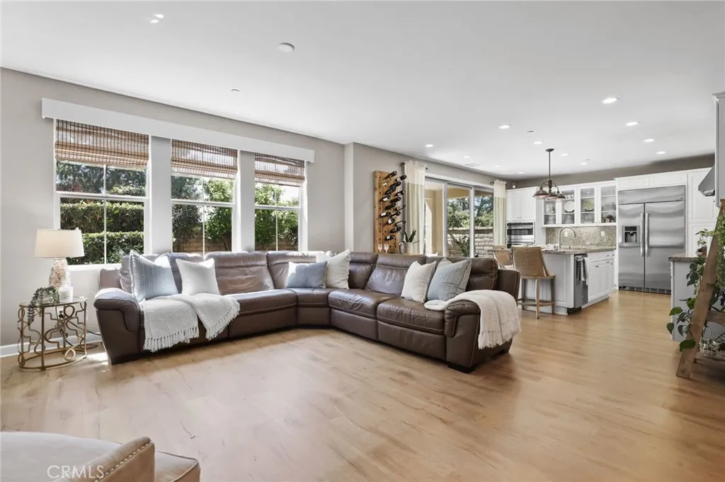Located in the Prestigious Resort Style Community of Baker Ranch, this Elegant 3 Bed 3.5 Bath Turn-Key Residence has been Immaculately Maintained and upgraded throughout. Embrace the Indoor/Outdoor California Lifestyle. Soaring Cathedral Ceilings, Designer Paint, Upgraded Neutral Toned Wood Look Flooring and Wrought Iron Staircase greet you upon entrance and leads you to the open concept Great Room. Overlooking your Own Private Backyard Oasis, the Great Room is filled with Natural Sunlight and Spacious and accommodating for family gatherings. Continue into the Gourmet Kitchen featuring Upgraded Stainless Steel Appliances, Built-In Refrigerator, Upgraded White Cabinets, Granite Backsplash, Upgraded Sink, Designer Light Fixture and a Massive Center Island w/ Beautiful Granite Counter Tops w/Bar Seating. Continue through the Sliding Glass Panel Door outside to the Private Backyard to enjoy Lush Landscaping, Natural Fruit Trees, Custom Outdoor Lighting and Tranquil Sunsets. Embrace the Indoor/Outdoor California Lifestyle we all love! Upstairs you will find the Multi-Purpose Loft, Convenient Upstairs Laundry and 3 Bedrooms each w/attached individual bathrooms. ThePrimary Suite Retreat is Light, Bright and Spacious and leads to the fully upgraded Spa Like Primary bathroom featuring upgraded Tile Flooring, Neutral Toned Granite Counter Tops, and a Restorative Glass Walk-In Shower. Additional features for the Modern Day Buyer include Water Softener and a spacious Two Car Garage with Epoxy Flooring, Level 2 EV Charger, Built-In Steel Garage Cabinets w/ Work Bench. Ideally located ju