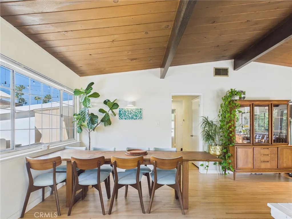 Nestled on a quiet cul-de-sac, this striking mid-century modern home blends timeless design with thoughtful upgrades and unbeatable South Bay location. Just minutes from Rolling Hills Country Club, Portuguese Bend Hiking Reserve, and some of the areas most beautiful beaches, this home offers the best of both architectural charm and modern convenience. Inside, the open-beam wood ceilings, original white oak floors, and expansive floor-to-ceiling windows create a bright, airy flow throughout the living and dining spaces. A white brick dual-sided fireplace anchors the home, adding warmth and character. The kitchen celebrates its mid-century heritage with vintage tile countertops and a fully functional 1950 Western Holly oven, paired with newer appliances for the perfect blend of nostalgia and practicality. Both bathrooms have been thoughtfully updated one featuring vertical artisan tilework, brass fixtures, and a floating vanity, while the second embraces a moody, designer palette with custom shelving and a walk-in shower. Enjoy peace of mind with new copper plumbing, updated electrical outlets, central heat and A/C connected to a WiFi Nest system, and a new front-and-back irrigation system with drip watering. Step outside to your wrap-around Trex deck, perfect for entertaining under caf lights or enjoying quiet mornings surrounded by lush privacy landscaping. This home is the perfect retreat stylish, comfortable, and ideally located close to golf, hiking, the ocean, and everything the South Bay has to offer.