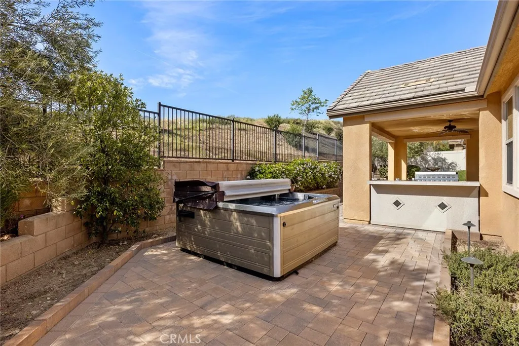 Welcome to this beautiful 5 bedroom 4.5 bath luxury home in South Corona. You'll immediately feel at home as you walk through the large entry and in to the welcoming family room. Hardwood floors downstairs lead you through this fantastic floor plan, highlighted by large kitchen w/granite countertops, farmhouse sink, double oven and walk-in pantry. Master bedroom suite includes large master bath with large shower, soaking tub and large master closet. 4 total bedrooms downstairs including a separate mother-in law quarters with private entrance and kitchenette. One upstairs bedroom with full bathroom and large loft area perfect for a game room, theatre or second family room. Home sits on a single loaded street with mountain views from the front yard. Private backyard with no homes behind features large built in BBQ and seating area, fire pit and jacuzzi, all beautifully done, perfect for relaxing evenings and entertaining guests. Other desirable features of this property include low maintenance landscaping, fire sprinklers, solar panels owned, epoxy finished garage floor, tankless water heater, water filtration system and voltage for electric vehicle charge port. Community features include walking trails, HOA community center with swimming pool, community sports park and nearby shopping. This is a fantastic home in a beautiful area!!! Come and see today!!!