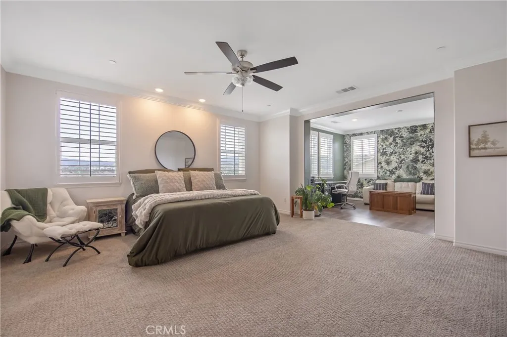 Welcome to this Stunning River Village Pool Home, beautifully Elevated to capture Serene Riverbed Views and Sparkling City Lights. Thoughtfully Upgraded throughout, the Home features Elegant Quartz & Granite Countertops, Crown Moldings, Custom shutters, Recessed lighting, Upgraded carpeting, and Engineered Wood flooring, all Complimenting a Light, Bright Open floor plan designed for both Everyday Living and Entertaining. The Main level offers a True Gourmet kitchen with a Walk-in Pantry, Double Islands, Beverage Center, Stainless Steel appliances, and Abundant storage opening to a Spacious Great Room-Family Room with a Cozy Fireplace and Breathtaking Views of the Riverbed. A Formal Living Room adds Refined Entertaining space, while a dedicated Office and Private bedroom with an En-suite Bathroom provide Flexibility for Multigenerational Living. Upstairs the expansive Primary Retreat is a private Sanctuary, complete with a Beverage Center, Coffee Bar, Office area, Luxurious Bedroom and Spa Inspired Bathroom. Additional Highlights Include a Large Laundry Room with Plentiful Storage Capabilities, Spacious Loft, a Bedroom with En-suite Bathroom, Two Generously Sized Guest Bedrooms and a Full Bathroom which includes Dual Vanities, Quartz Counters and a Dual Shower Head. All Bedrooms are Oversized offering Comfort and Versatility throughout. Step Outside to your Resort-Style Outdoor Retreat, featuring a Built-in Barbeque, Pool and Spa with Waterfall, Dramatic Fire Bowls, a Fire table and a Covered Patio with Fireplace and TV - Perfect for year round Enjoyment. Beautiful Pavers en