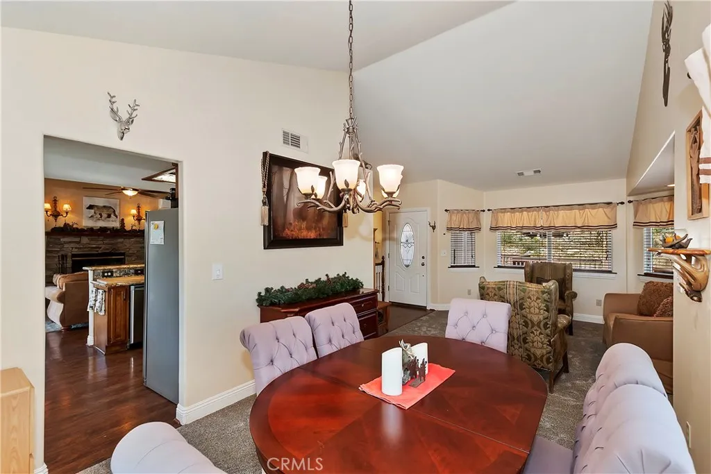 Experience the magic of Lake Arrowhead living with sweeping, long-distance panoramic forest views and exceptional privacy on a rare 17,000+ sq ft double lot. This beautifully upgraded mountain retreat, offered mostly furnished, delivers space, serenity, over $100,000 in recent enhancements and, of course, FULL LAKE RIGHTS. Step inside to warm, inviting living spaces, including a cozy family room with a wood-burning fireplace the perfect mountain ambiance. Newer luxury carpeting flows throughout both levels, complementing the updated kitchen featuring granite countertops and refreshed cabinetry. Designed for comfort and resilience, the home now includes a 14KW Generac whole-house standby generator with internet monitoring, 1-ton Daikin air conditioning serving both levels, dual-pane windows, three low-maintenance TREX decks and, a newer SunSetter awning that extends your outdoor enjoyment. Outdoor living truly shines here. The main deck flows from the living room, while a second deck off the primary suite captures additional breathtaking panoramic views and creates a peaceful retreat. The third trex deck, located at the front of the house, offers an expansive gathering area, as well. The newer concrete driveway provides level, direct access from the 2-car garage plus expanded parking for guests or boat storage. And, the newer retaining wall with safety railing enhances both function and curb appeal. Pet lovers will appreciate the fully enclosed, top-to-bottom fenced area directly off the laundry room a secure and protected outdoor space. Additional fenced areas offer expan