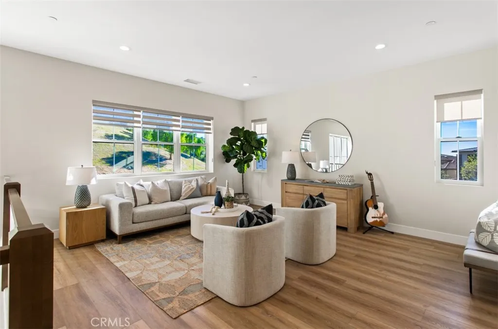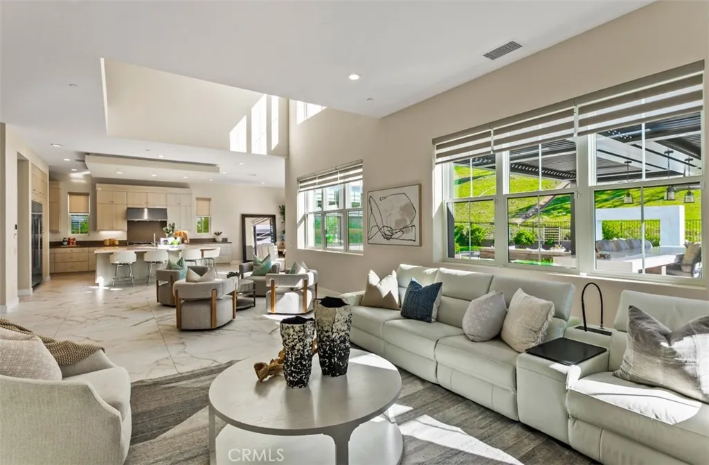 Ocean views, a resort-style backyard with pool, spa, sauna, cascading waterfall, fire table, and bar lounging areas create the ultimate setting for luxurious coastal living in Ocean Hills, just minutes from Dana Point Harbor. Ideally positioned with sprawling open space both behind and to the side, this beautifully refreshed residence offers exceptional privacy and a unique serene setting while enjoying access to Ocean Hills amenities which include an array of scenic trails along with a community clubhouse with water and entertainment amenities including a fitness center. Inside, the home has been thoughtfully updated with new flooring throughout, showcasing Calacatta Oro matte Italian porcelain tile across the entire main level. Fresh interior paint and a bright modern palette enhance the open-concept great room where expansive living and dining spaces center around views of the backyard oasis. The chefs kitchen blends style and functionality with soft-close drawers/cabinets, a Sub-Zero refrigerator, JennAir six-burner gas range, under-cabinet lighting and a generous walk-in pantry. The main level offers exceptional flexibility with a private guest suite featuring an ensuite bath, along with a wellness room that can easily serve as a fifth bedroom, fitness studio or home office. Upstairs, a spacious loft landing provides additional living space while the primary suite offers a large private balcony with ocean and sunset views, an oversized walk-in closet and a spa-inspired bath with soaking tub, dual-entry glass shower, separate vanities, and a private balcony to take in t