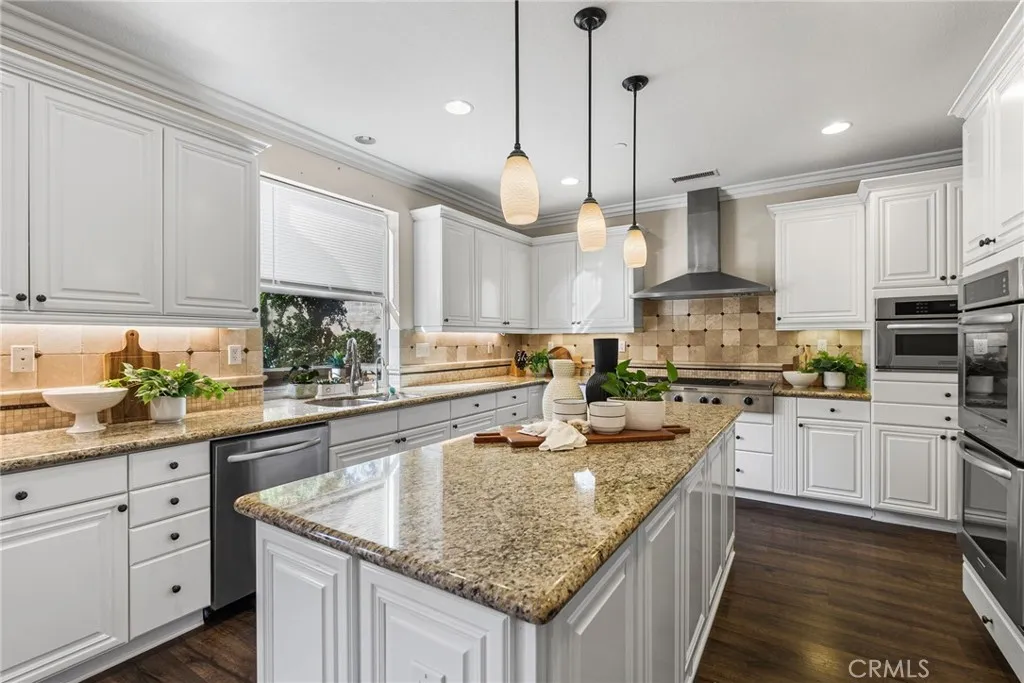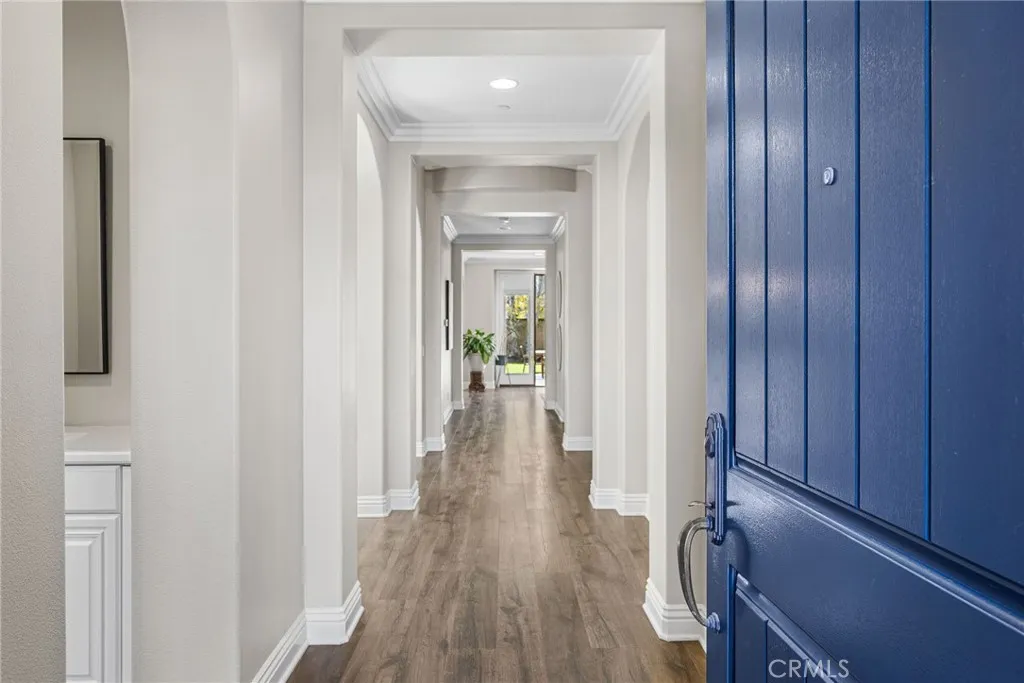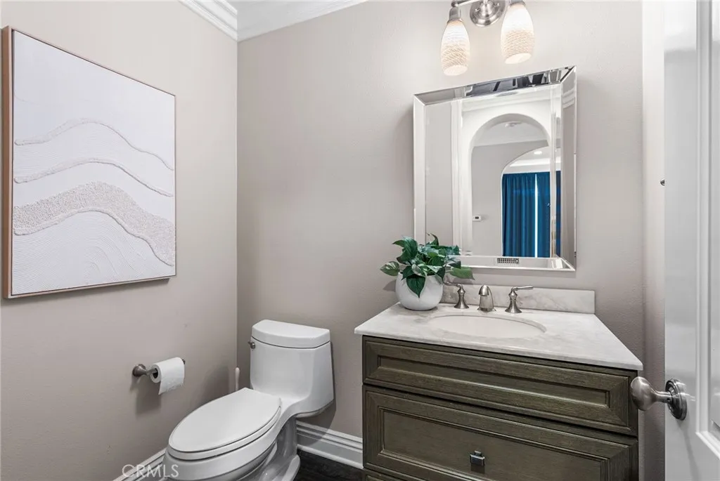 Bright and ready for move-in, this spacious cul-de-sac home offers an outstanding move-up opportunity behind the gates of San Juan Capistranos prestigious Belle Cliff at Pacifica. Built by award-winning John Laing Homes in 2007, it features the largest floor plan in the community, with a stylish, practical and flexible two-story design spanning approximately 3,912 square feet. Five bedrooms and 4.5 baths include a main-level ensuite ideal for a home office, guests, a nanny or in-laws. Upstairs, a versatile loft creates the perfect office, play or homework space, two bedrooms open to a covered balcony, and two secondary bedrooms share a bath. Main living areas are grand in scale, with a formal entry opening to a gallery-style hall, and arched passageways leading to formal living and dining rooms that access a private side patio with fountain. Backyard views enrich a generously proportioned family room with an elegant fireplace and a custom built-in media center with surround-sound. The family room flows through a light-filled breakfast nook to a high-end chefs kitchen with island, white cabinetry, granite countertops and full backsplash. A walk-in pantry is featured, and top-tier stainless-steel appliances include a built-in refrigerator and six-burner cooktop. Homeowners will appreciate the privacy of an inviting primary suite with walk-in closet, separate vanities with vessel sinks, a soaking tub, and a separate shower with built-in seats. Enviable amenities capture the eye, including crown molding, custom window treatments, upgraded lighting fixtures, a dramatic three-tie
