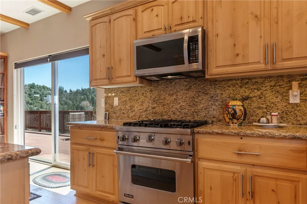 Priced to sell! An excellent opportunity awaits in this level-entry, well-maintained Lake Arrowhead home offering elevated full-time living or refined vacation retreat. Ideally located at the end of a quiet cul-de-sac, the property captures sweeping treetop and mountain views, with beautiful seasonal color year-round. The main living area showcases vaulted ceilings, hardwood floors, floor-to-ceiling windows, and a dramatic split-stone granite fireplacecreating a warm yet sophisticated mountain aesthetic. The open-concept dining area connects to a gourmet kitchen featuring granite countertops, Viking stainless steel appliances, knotty alder cabinetry, and a center island designed for gathering. Offering 3 bedrooms, 2.5 bathrooms, plus an office or optional 4th bedroom, the layout provides flexibility for both everyday living and hosting. The private primary suite includes its own deck, a spa-style bathroom, and a custom walk-in closet. A lower-level bonus space adds versatility for a game room, media room, or guest quarters. Additional features include a heated level-entry garage, generous storage, and true move-in ready condition. Enjoy coveted lake rights along with convenient access to the country club, golf course, and nearby forest trailsenhancing the mountain lifestyle experience.