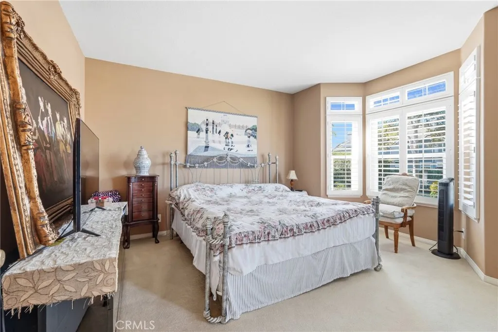 Welcome to one of the most desirable locations in Moulton Ranch, featuring a beautiful rose garden and exceptional curb appeal. This 4,000 sq. ft. custom home sits on a 7,000 sq. ft. lot and offers an impressive open-flow layout with 5 bedrooms, an office, and a large loft. The residence includes two primary suites, one conveniently located on the main level, along with a dedicated office. Enjoy vaulted ceilings, a marble-entry foyer, an upstairs bonus room, and a formal dining room that opens to a spacious family room with a full bar. The kitchen features hardwood cabinetry and marble countertops, overlooking peaceful natural views. Additional highlights include a luxurious living room with a fireplace, wood floors, custom crown molding, and a primary suite retreat with two walk-in closets and a Jacuzzi tub. A laundry room and a three-car garage complete this exceptional home.