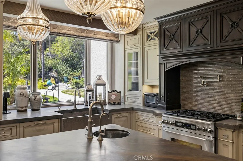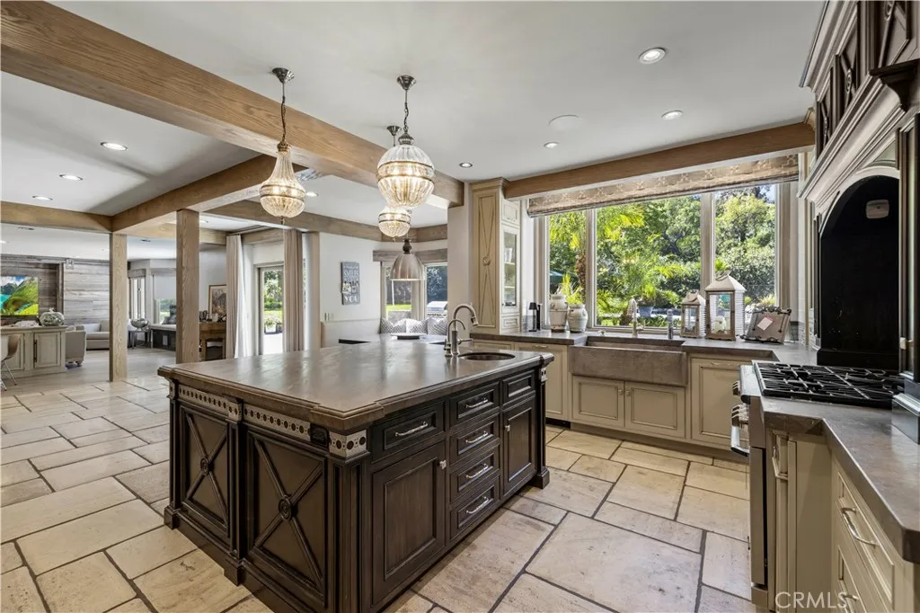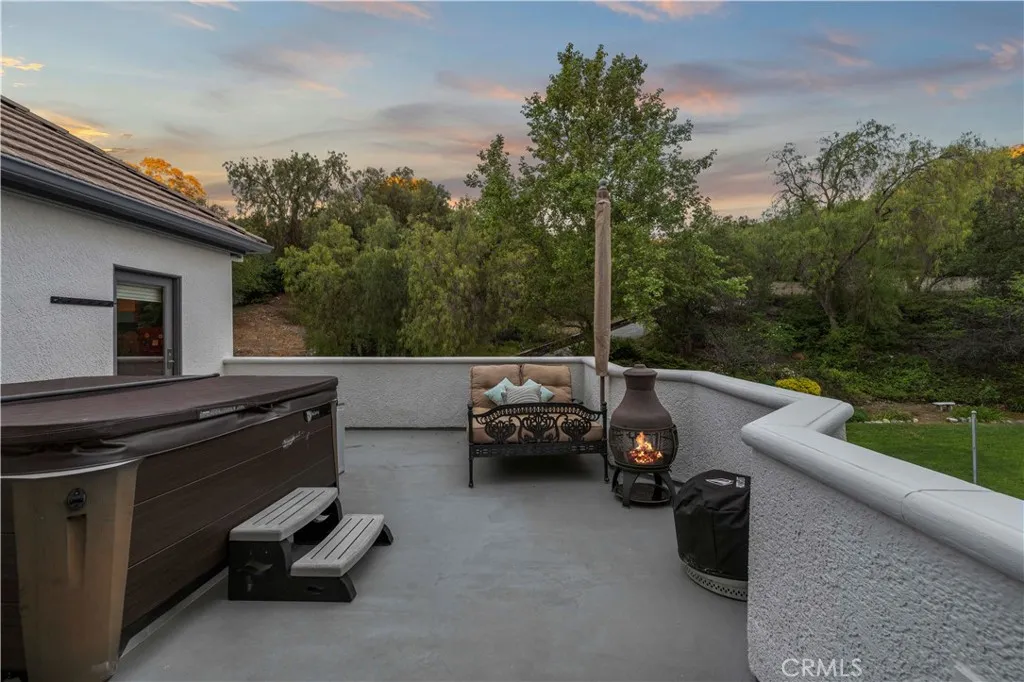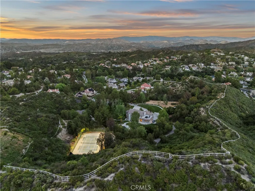 Welcome to your dream home in the prestigious Sand Canyon neighborhood! This California contemporary estate offers 5,134 sq ft of living space on a nearly 9-acre private and fully fenced property with serene mountain views. The gated drive leads to a grand circular driveway featuring a centerpiece fountain. A gorgeous custom metal front door opens into a sun-drenched great room with soaring ceilings, oversized windows, double doors leading outside, and a stunning custom statement fireplace, perfect for gathering or effortless entertaining. The formal dining room flows seamlessly from the main living space. The main level includes two well-appointed ensuite bedrooms with custom built-ins. The chefs kitchen is a true showpiece with a soapstone island, natural stone countertops, and custom cabinetry all opening seamlessly to the breakfast nook and family room. Enjoy the 6 burner Dacor range, double ovens, dual refrigerator/freezer, steamer and generous pantry storage. The expansive family room features exposed beams, a custom feature wall, an architectural fireplace with extended hearth, and a bay window seat. Upstairs, an airy loft overlooks the great room. The primary suite is a private sanctuary with a fireplace, balcony views, and a sun patio with above-ground spa. A generous walk-in closet leads to a flexible bonus room. The ensuite bath offers dual vanities, a separate soaking tub, steam shower with rainfall feature and towel warmer, plus a laundry chute for added convenience. There are three additional bedrooms on the second floor, including one en-suite. Outside, enjoy
