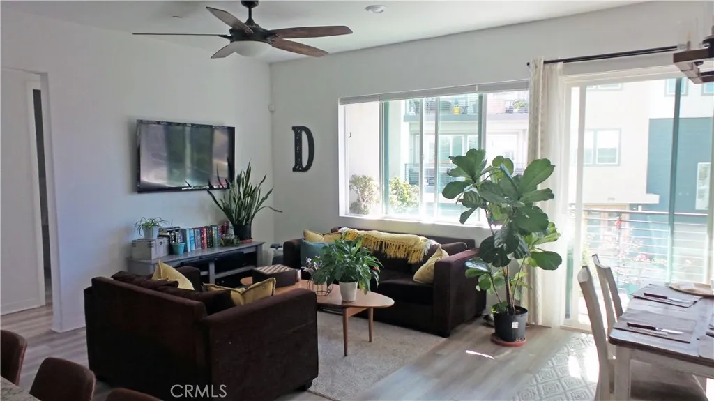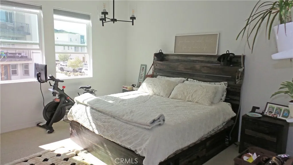 This stunning condominium was just built in 2022 and is nestled in one of Valencias most sought after communities, FivePoint Valencia, which was designed to offer its residents community living at its finest. Here are just a few of its many other outstanding features: Youll step into a flowing 1,442 square foot open concept floor plan that is in Pristine Condition with dimmable recessed lighting, plus an aesthetic blend of laminate and plush carpet flooring The spacious living room is bathed in natural light from a large picture window and has a contemporary lighted ceiling fan, The familys cook is going to truly appreciate the open kitchens abundant shaker cabinets, ample granite counters with full subway tile backsplash, center island with deep basin stainless steel sink and built-in breakfast bar, built-in stainless steel smart appliances, and the convenience of the adjoining dining area with its direct access to the balcony with its custom finished wood deck 3 bedrooms; The grand suite has a large walk-in closet, and a beautifully appointed bathroom with dual sink mirrored vanity, glass enclosed shower, and private commode A total of 2 bathrooms Functionally located laundry room with folding cabinet The energy efficient dual pane windows and solar panels will help keep your utility bills low and the interior very quiet HVAC system for year-round comfort 2 car tandem garage with EV charger Youre going to experience Resort Style Living enjoying the communitys clubhouse for your events, 3 pools areas with their cabanas and BBQ grills, bike Bump track, childrens Adventure p