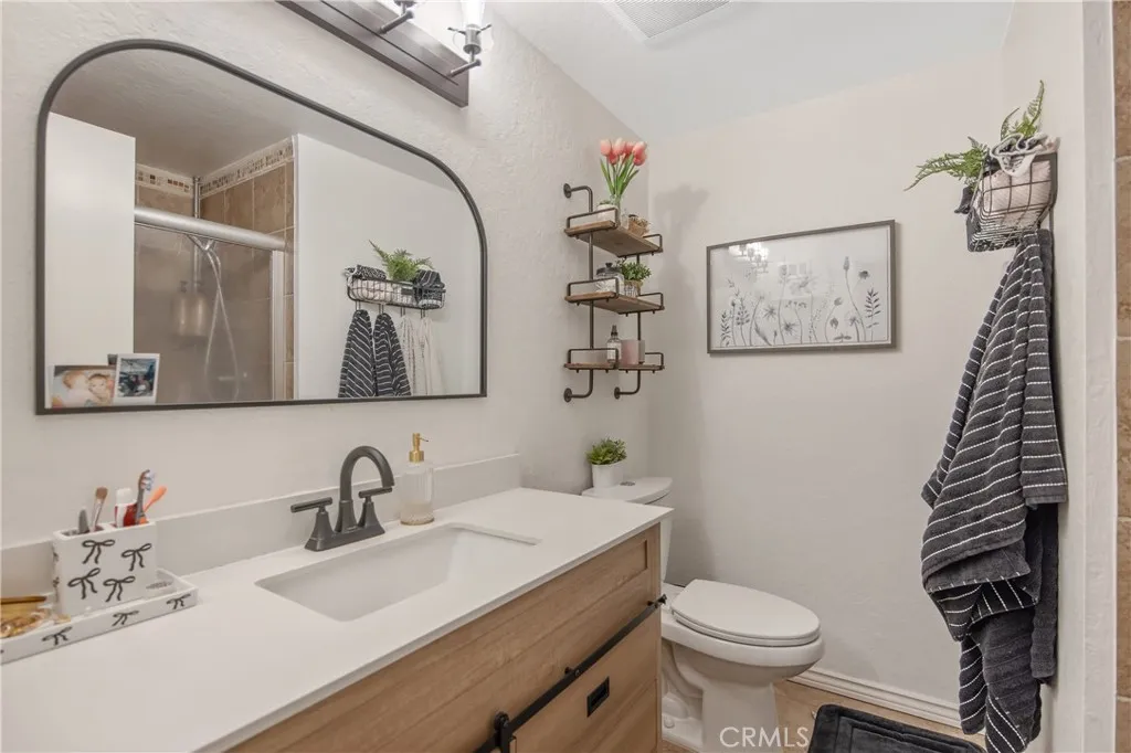 Beautifully updated 4 bedroom and 3 full bath Valencia residence in the Valencia Racquet Club with OWNED SOLAR! This beautiful home is light and bright, offering a fabulous floor plan with 4 large bedrooms, 3 baths tasteful upgrades along with a 2 car garage and lovely backyard! The upgraded kitchen features recessed lighting, quartz countertops, gorgeous center island and timeless upgraded cabinetry! The kitchen opens to the dining room and spacious family room, ideal for entertaining! With 2 primary suites, one on the main level makes this home ideal for multigenerational living! Upstairs you will find 3 more spacious bedrooms and 2 beautifully upgraded bathrooms! The enclosed backyard is wonderful for entertaining and offers plenty of space to enjoy! Just a block away from the community park, sports courts, pool and excellent schools! With Low HOA and NO Mello Roos, this is a home you will cherish for years to come!
